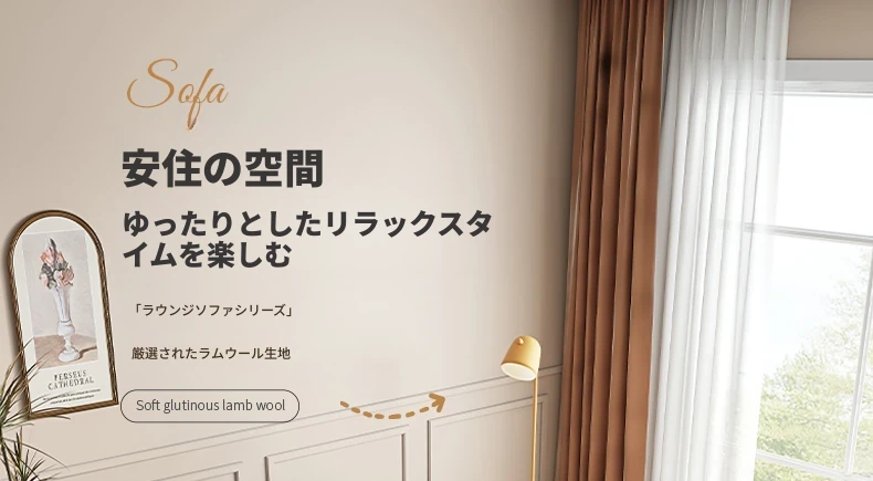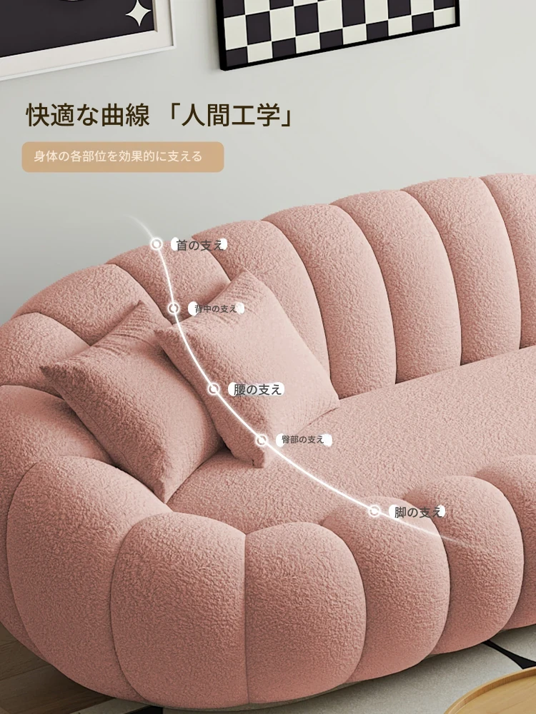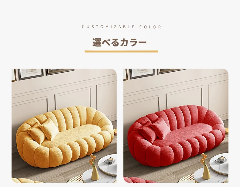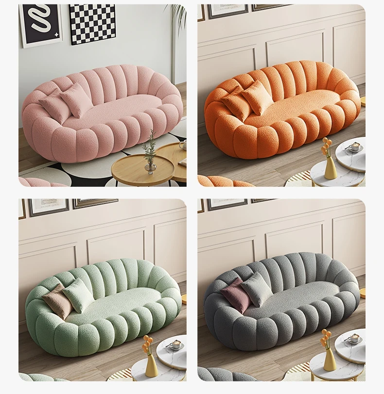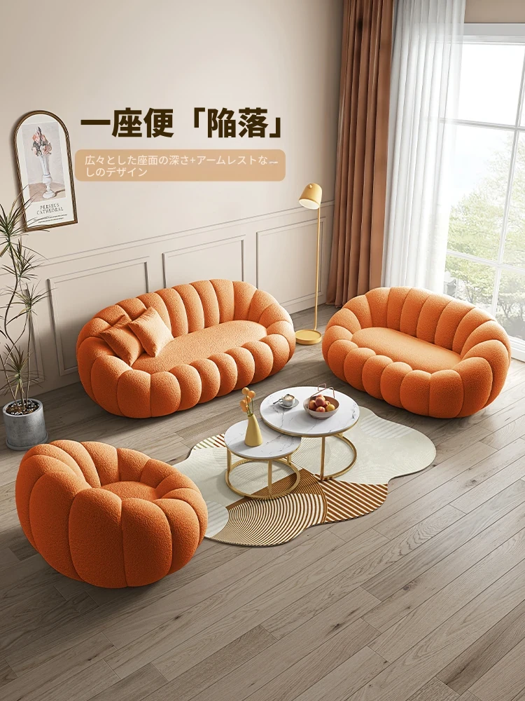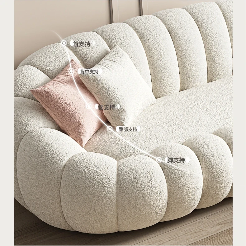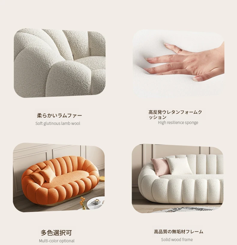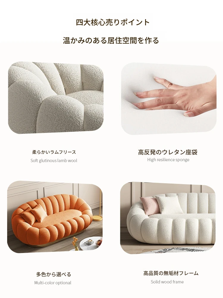 リビング用カボチャ型ラウンジソファ!南国風のクリーミーなラムファー製、バルコニーでくつろぐための回転式一人用チェア。心地よいリラックス空間を演出し、あなたの毎日を特別にします!
