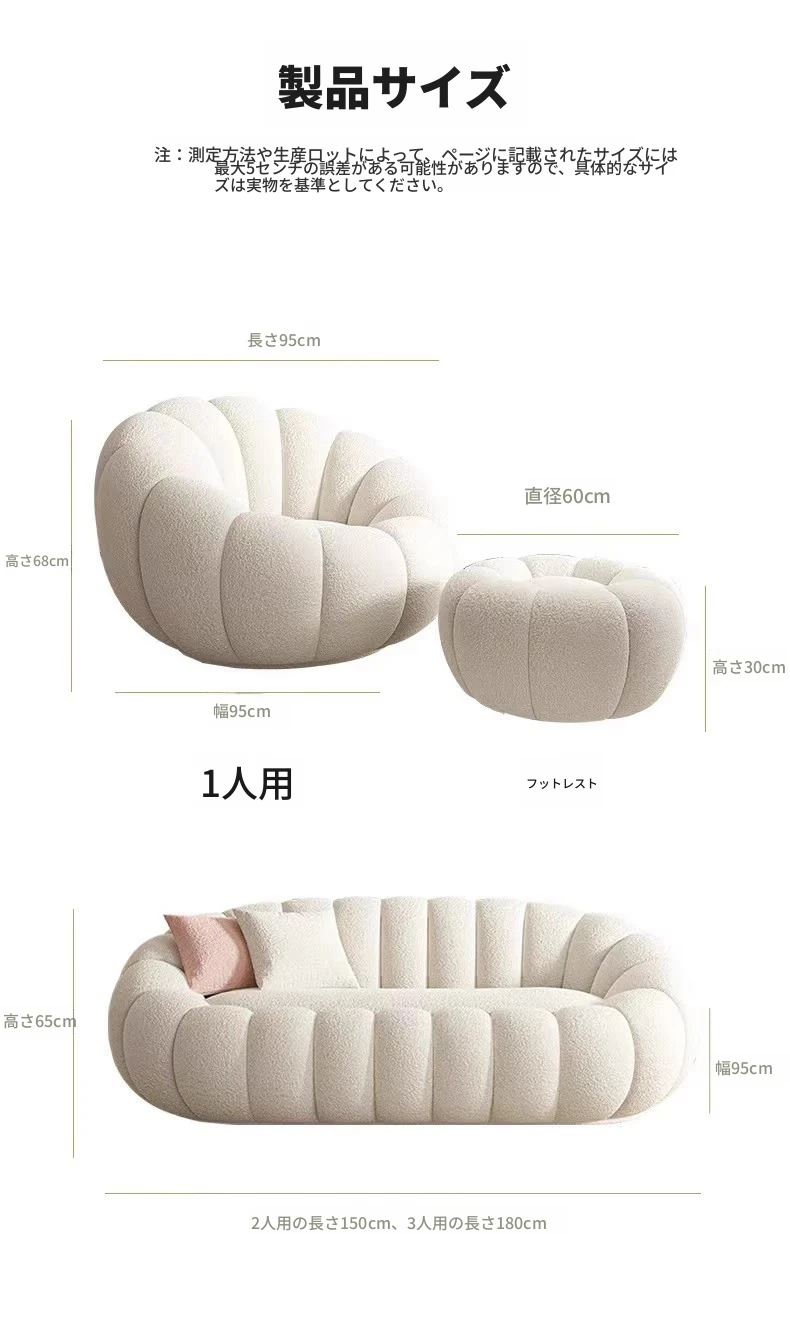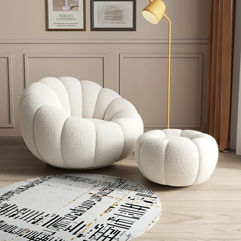 白色(ラムファー)360°回転木製ベース+フットスツール