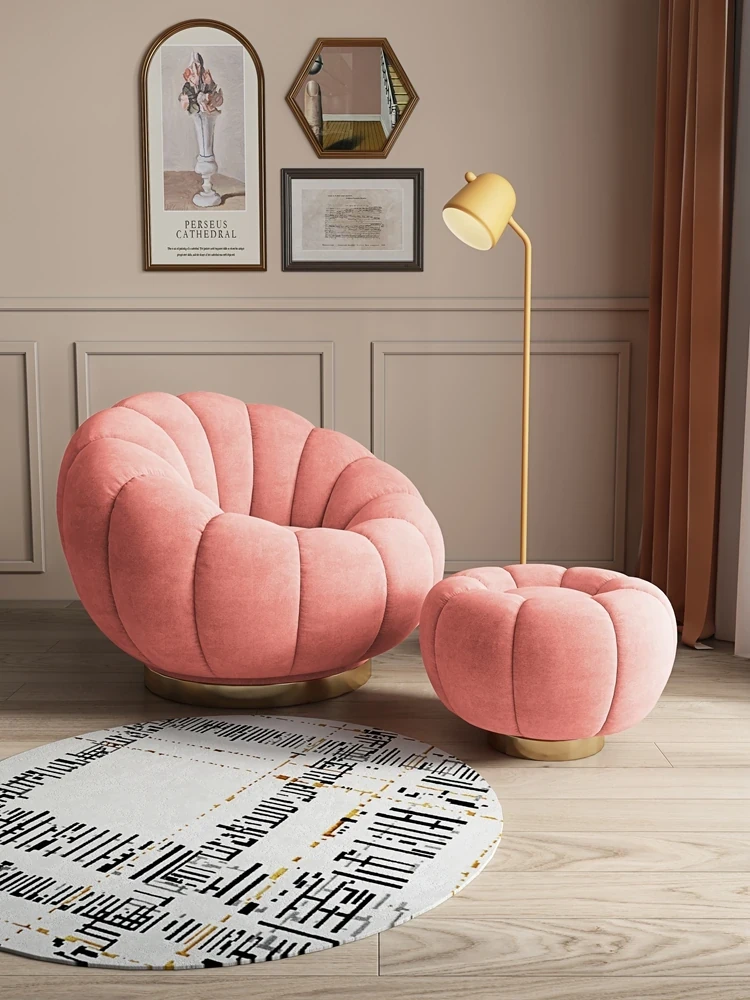 ピンク(ラムファー)360°回転木製ベース+フットスツール