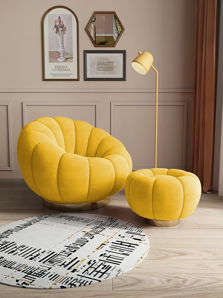 黄色(ラムファー)360°回転木製ベース+フットスツール