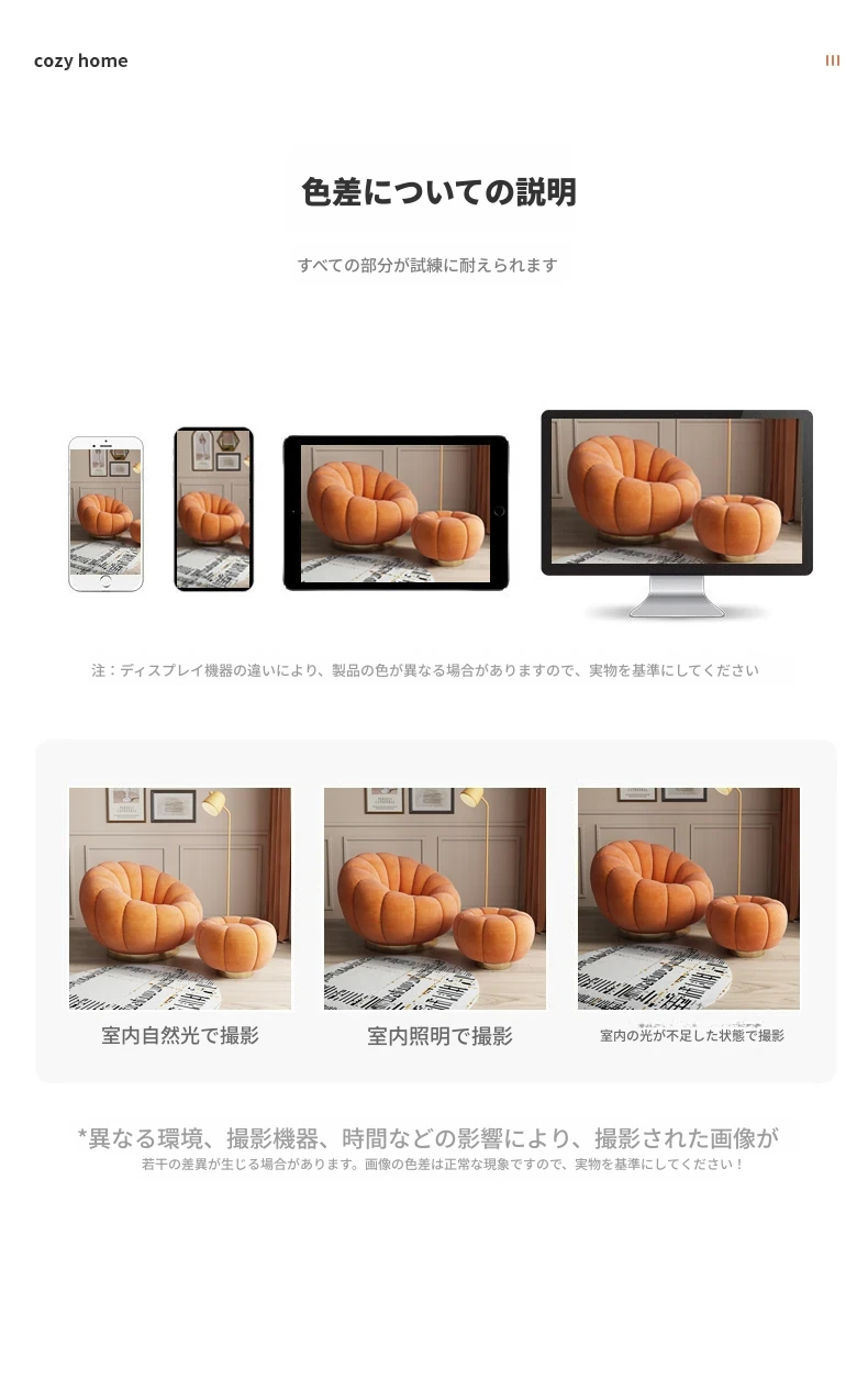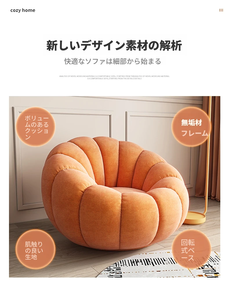 オレンジ(ラムファー)360°回転木製ベース+フットスツール
