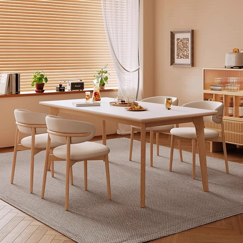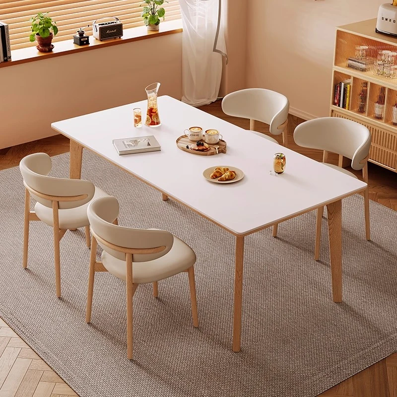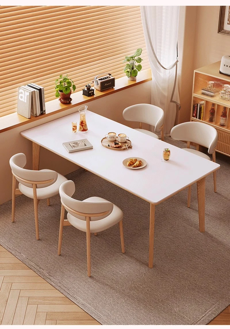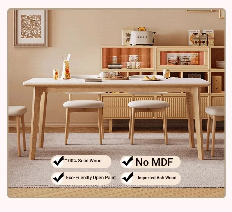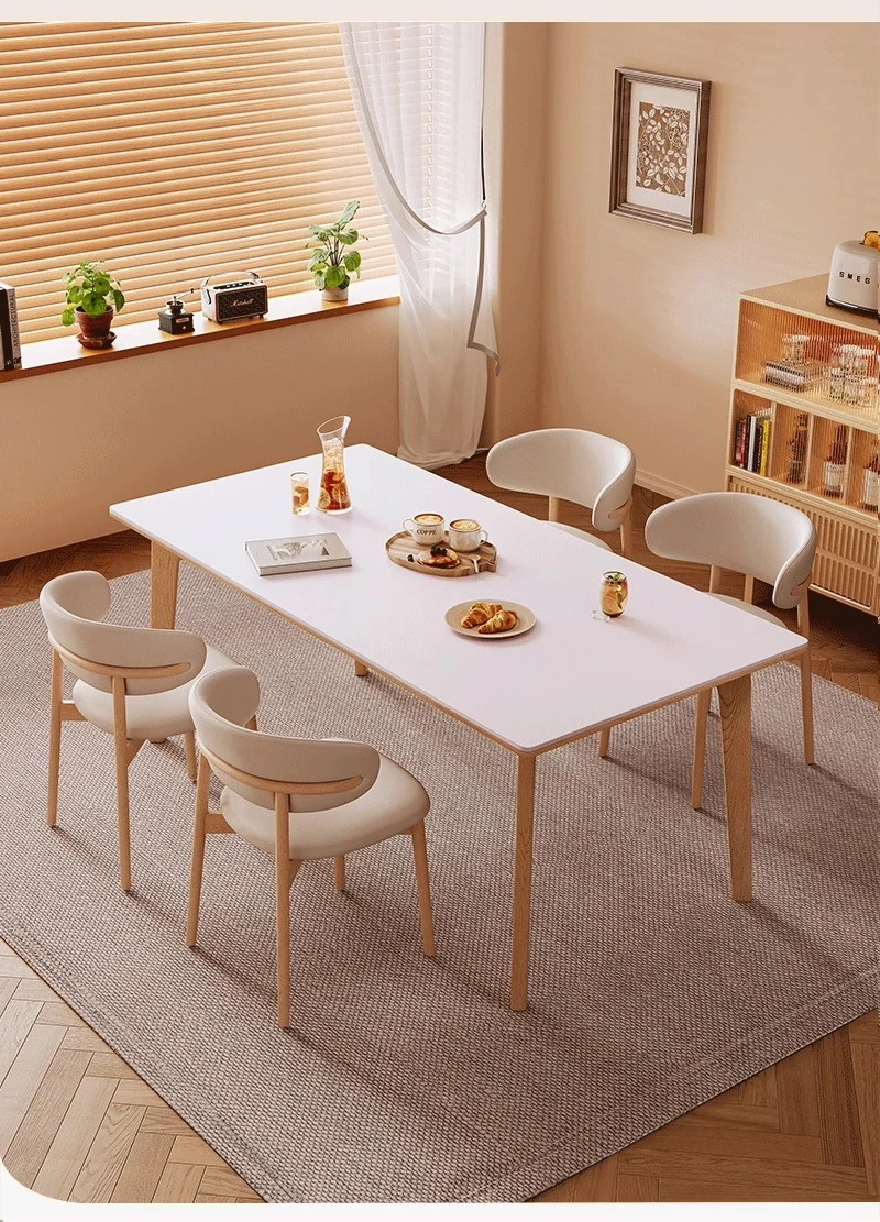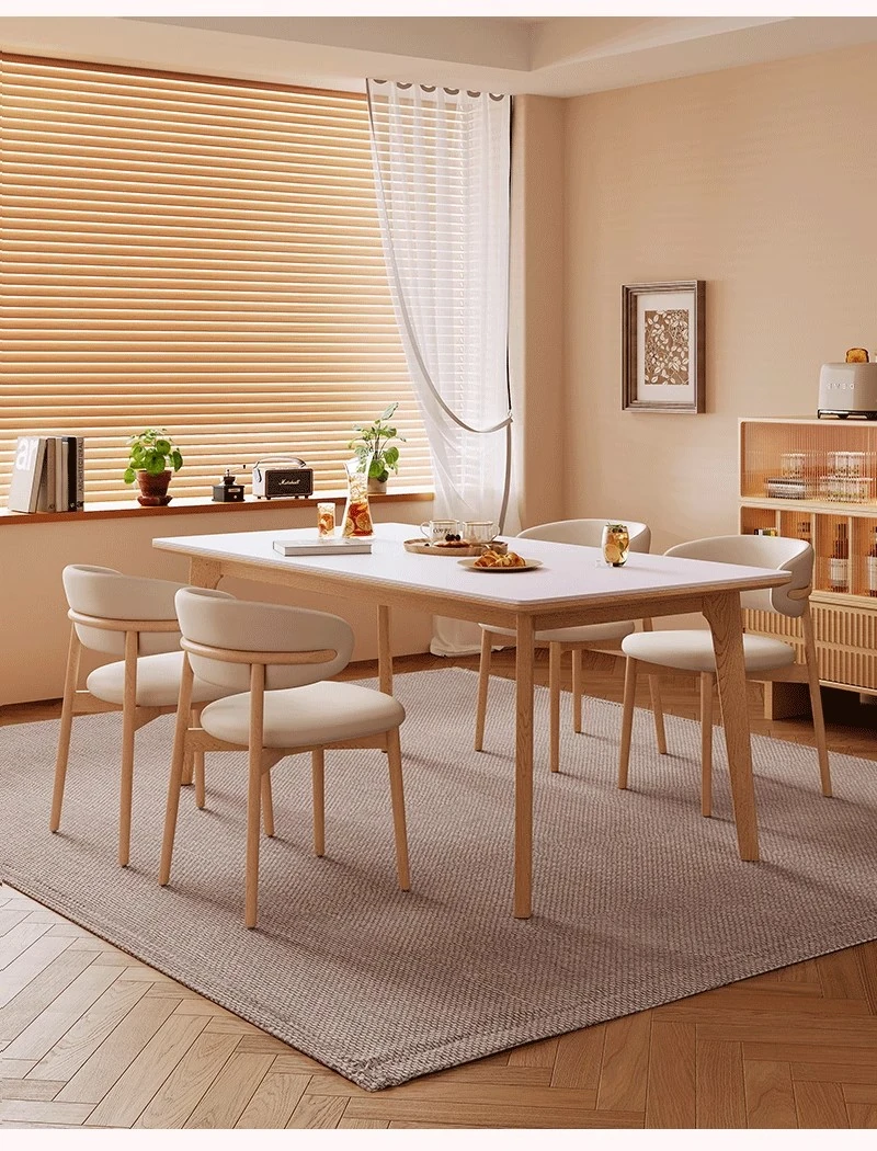 Creamy Style Solid Wood Dining Table and Chairs Set - 2025 New Arrival for Small Spaces, Featuring Rectangular Design in Ash Wood, Perfect for Home Use