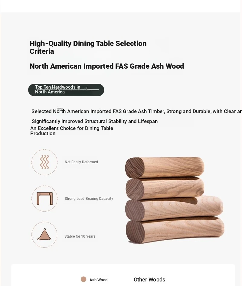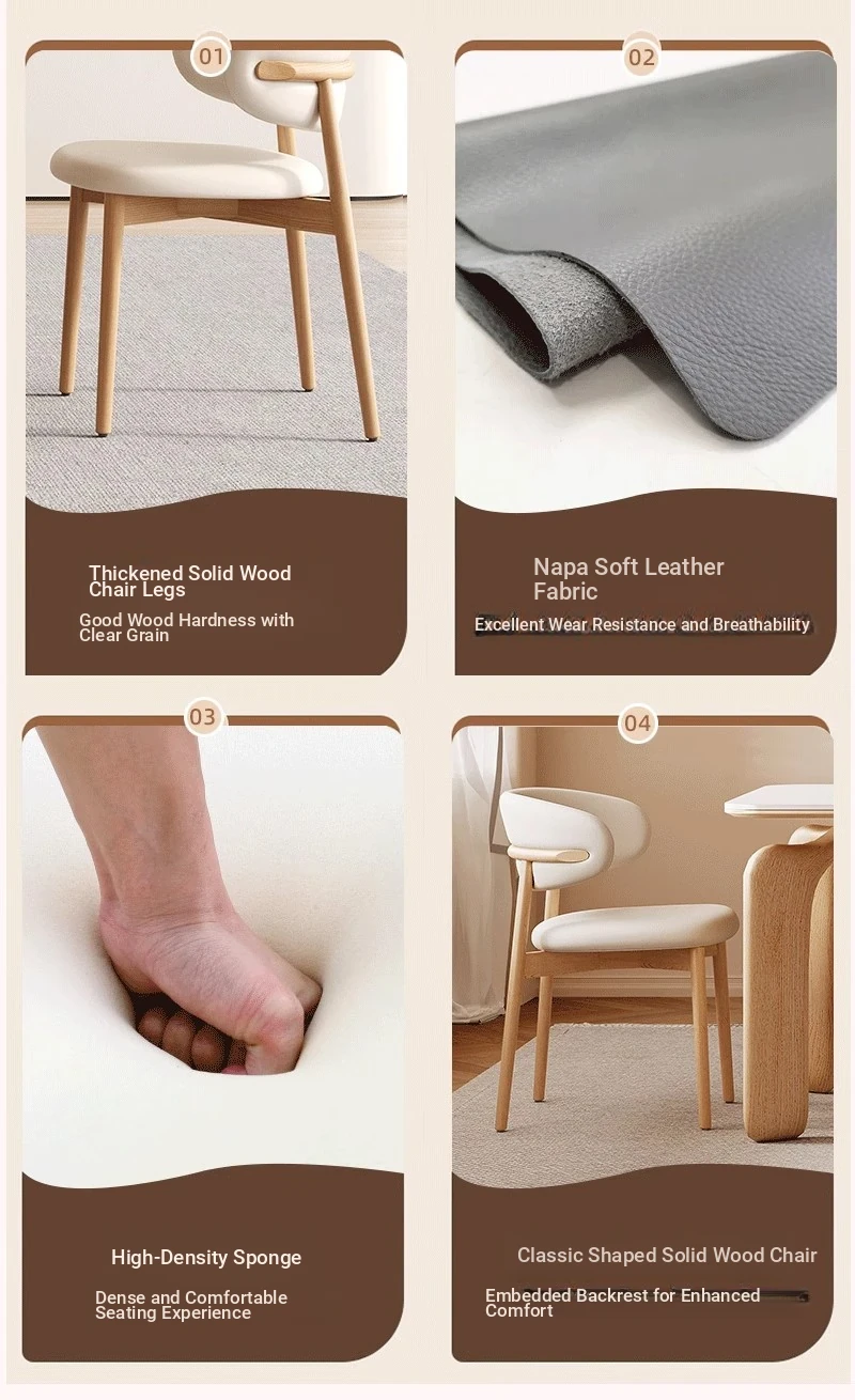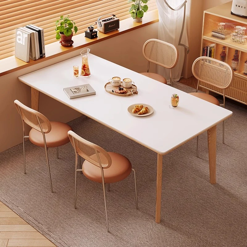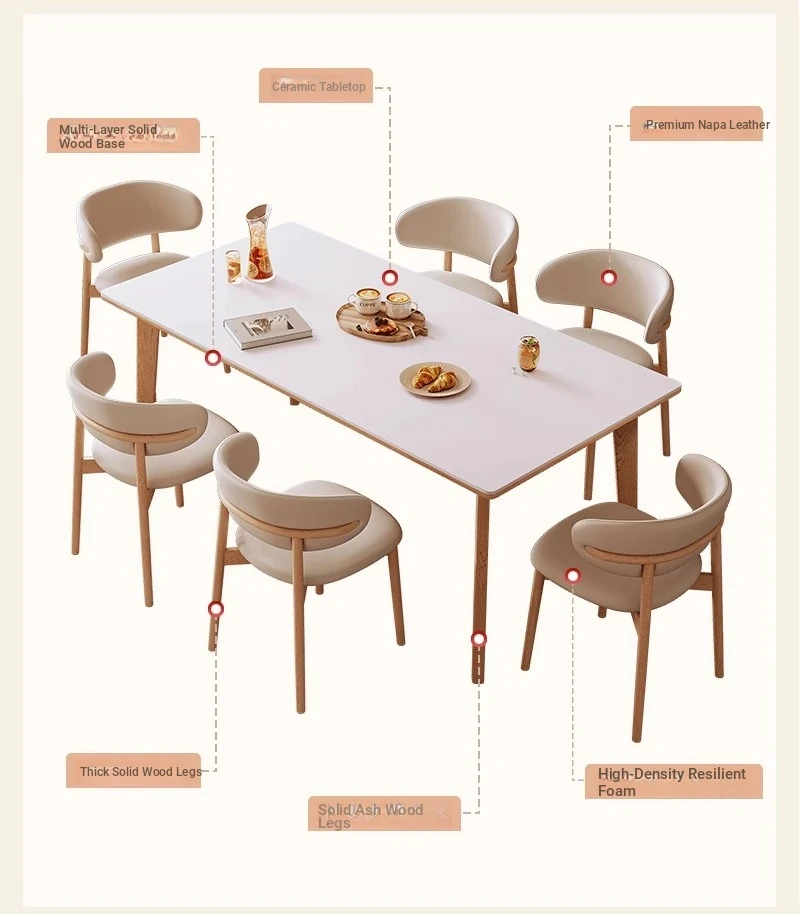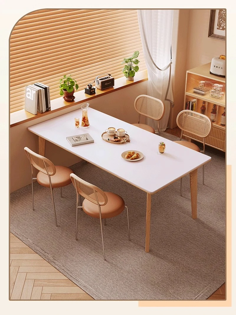 Creamy Style Solid Wood Dining Table and Chairs Set - 2025 New Arrival for Small Spaces, Featuring Rectangular Design in Ash Wood, Perfect for Home Use
