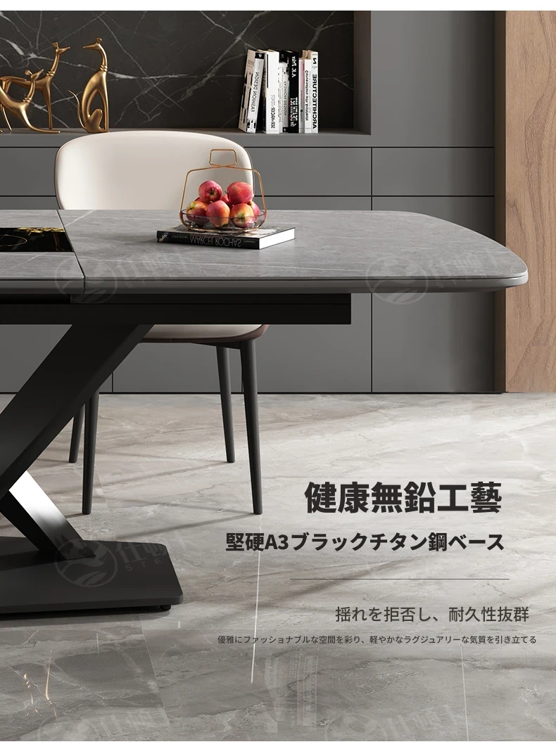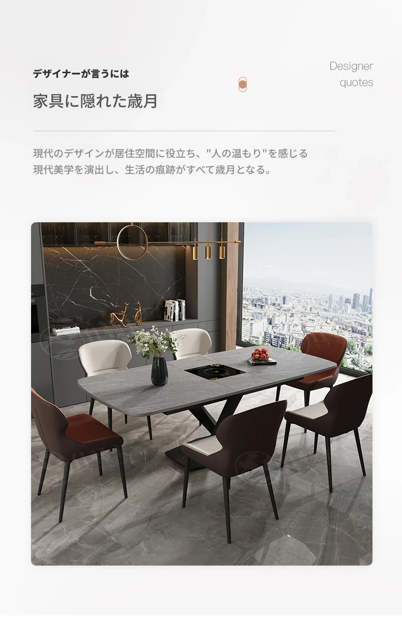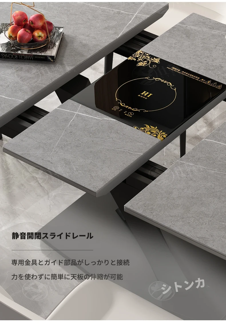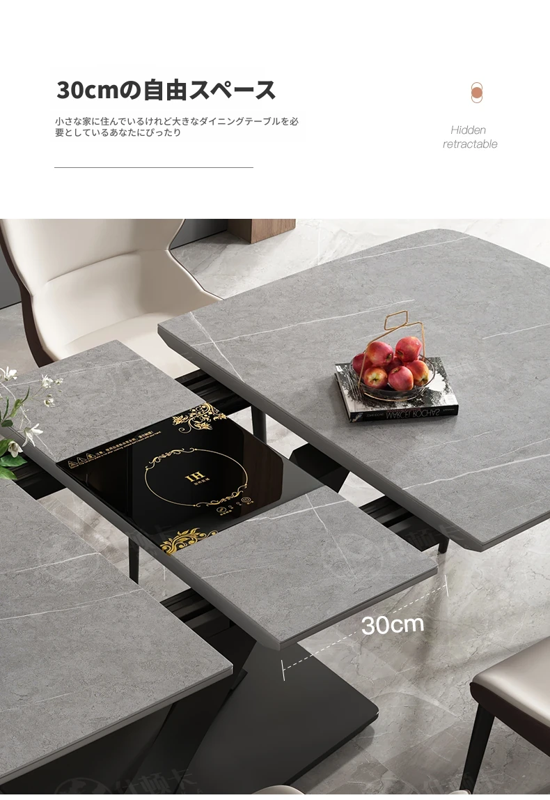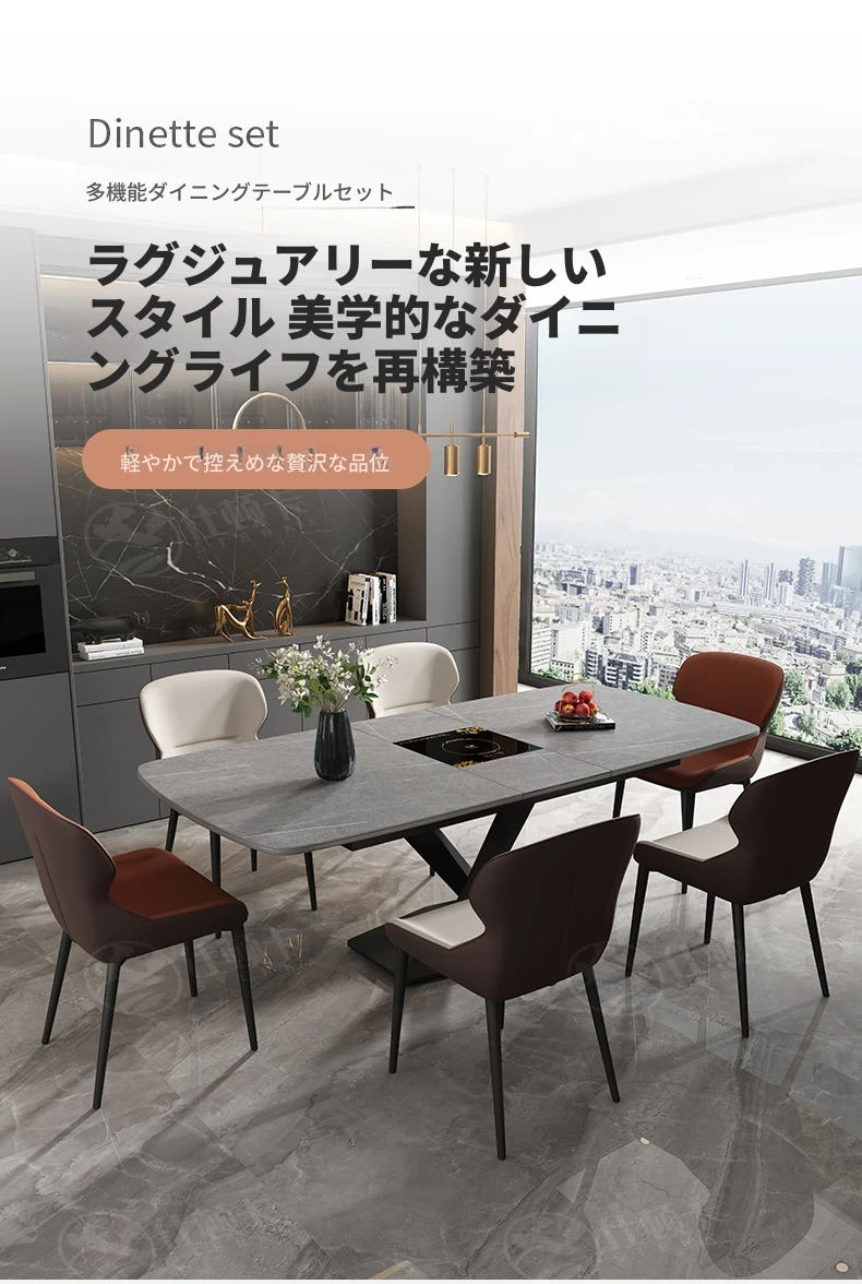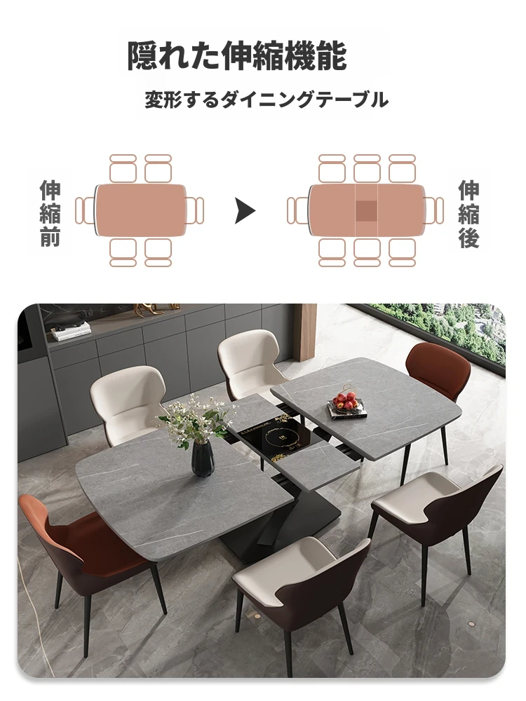 軽奢スタイルの伸縮式岩板ダイニングテーブル|小型住宅に最適な現代的なシンプルデザイン|多機能電磁調理器対応の折りたたみテーブルで、スペースを有効活用!