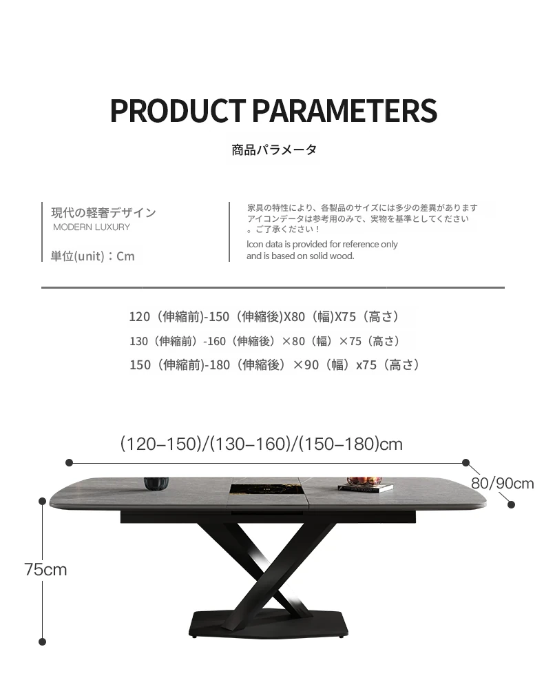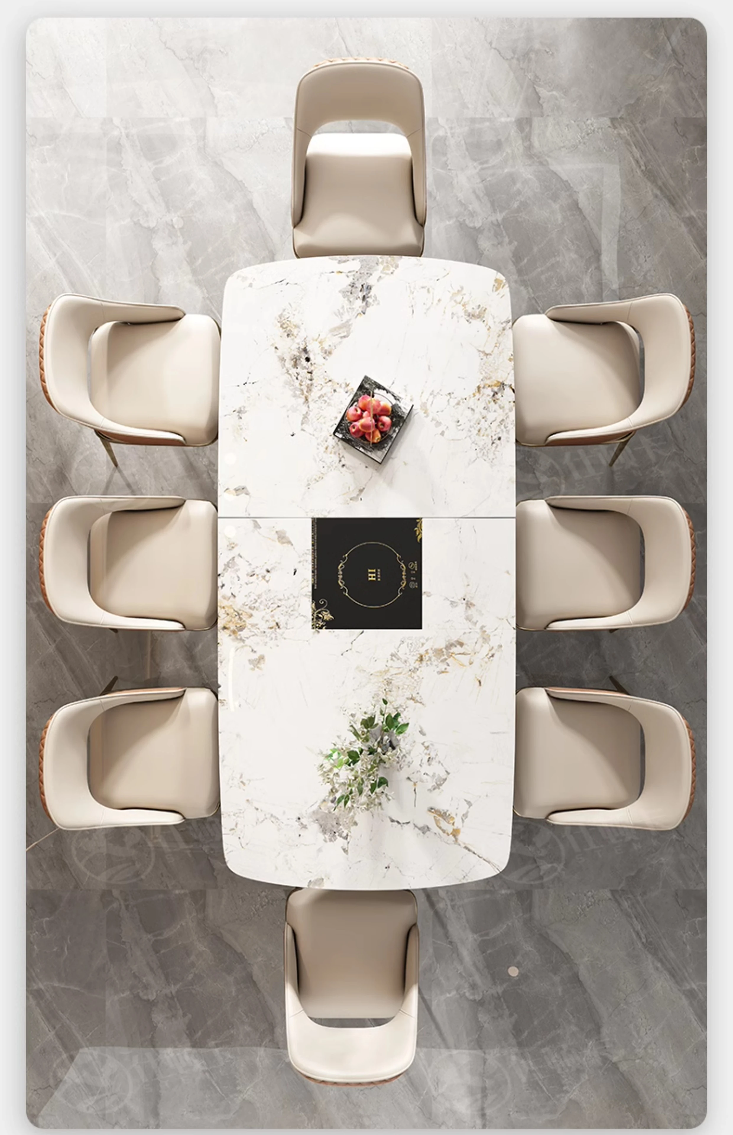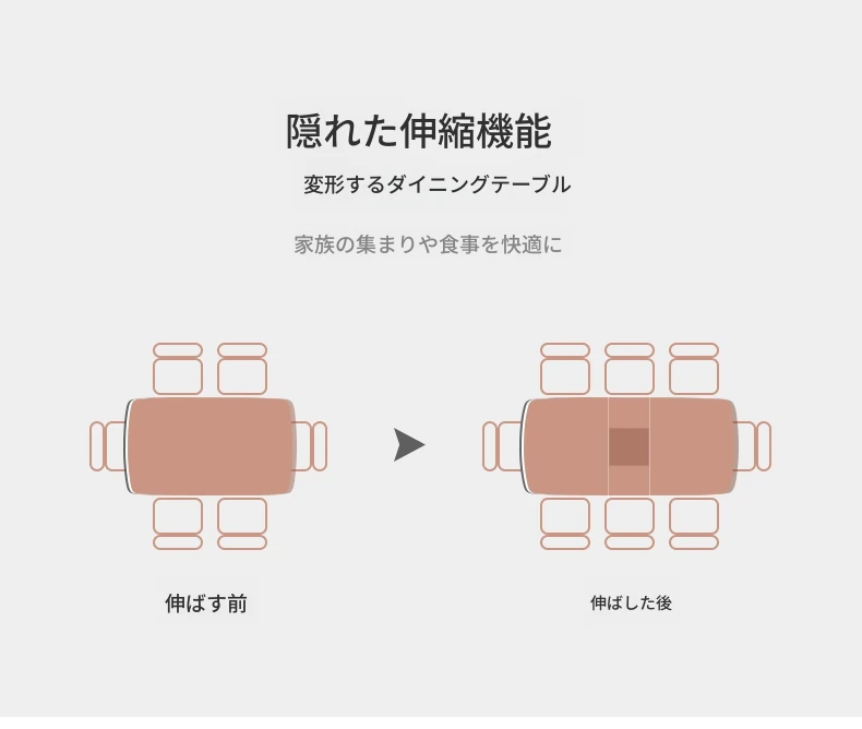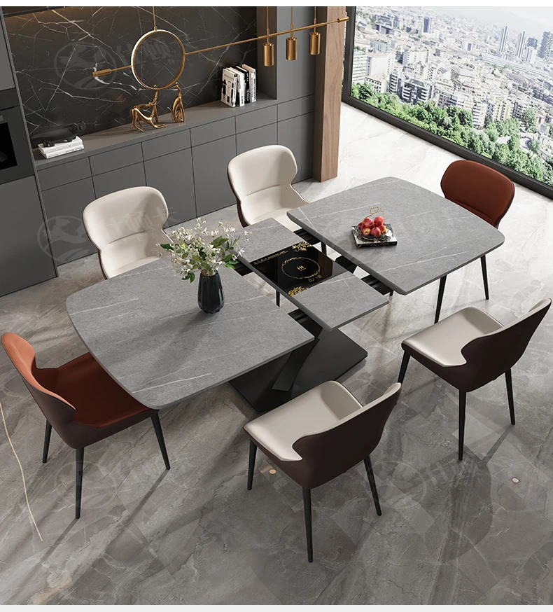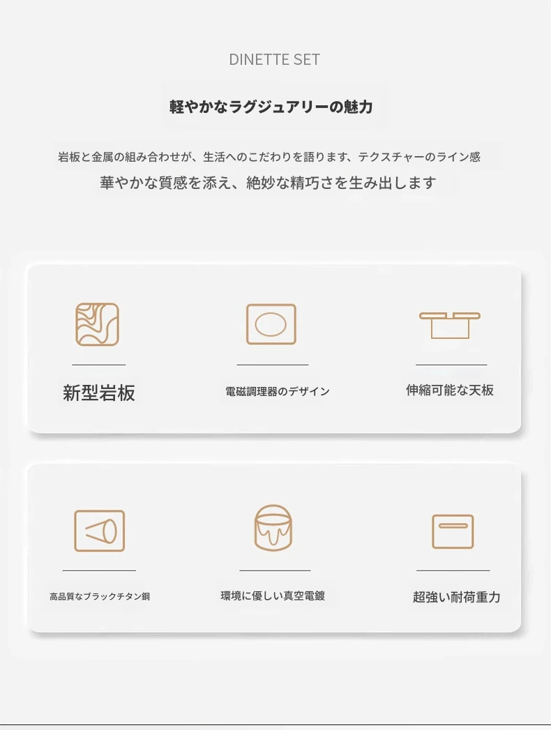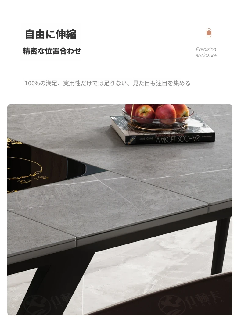 軽奢スタイルの伸縮式岩板ダイニングテーブル|小型住宅に最適な現代的なシンプルデザイン|多機能電磁調理器対応の折りたたみテーブルで、スペースを有効活用!