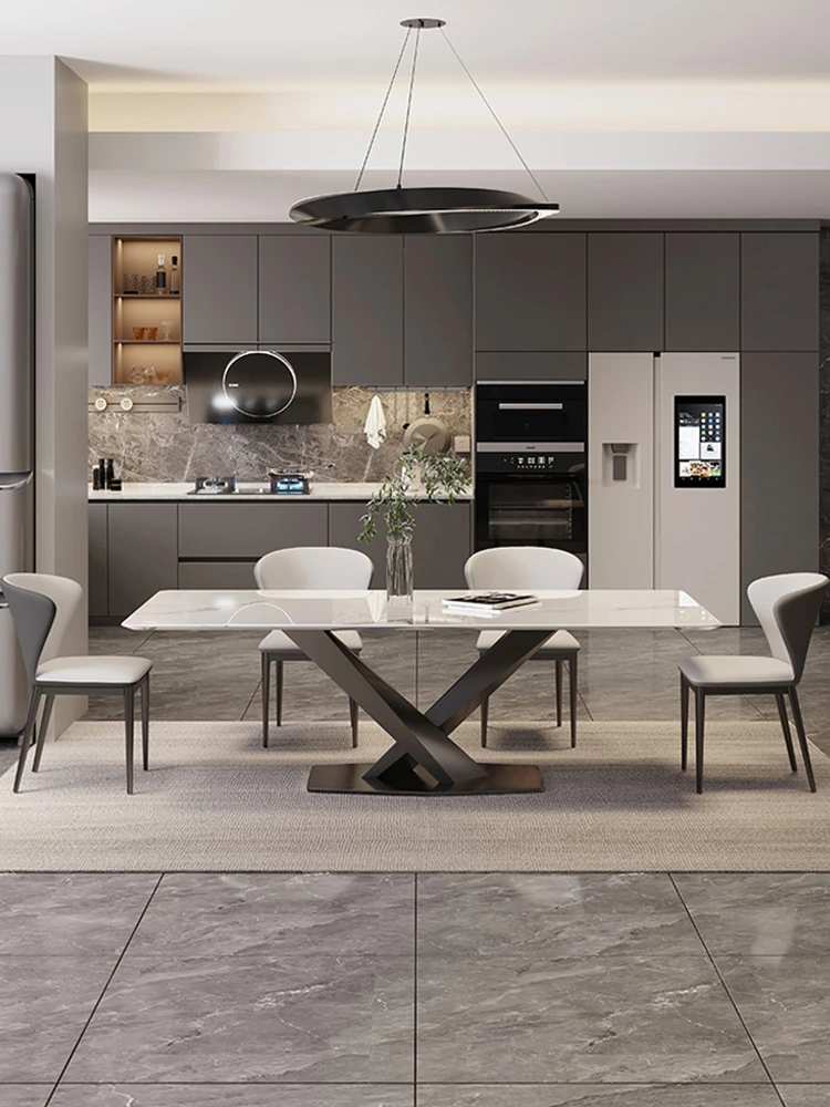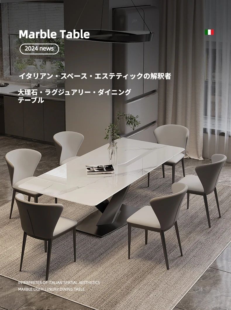 1.8m天然大理石ダイニングテーブル+キャットグラブレザー椅子*6
