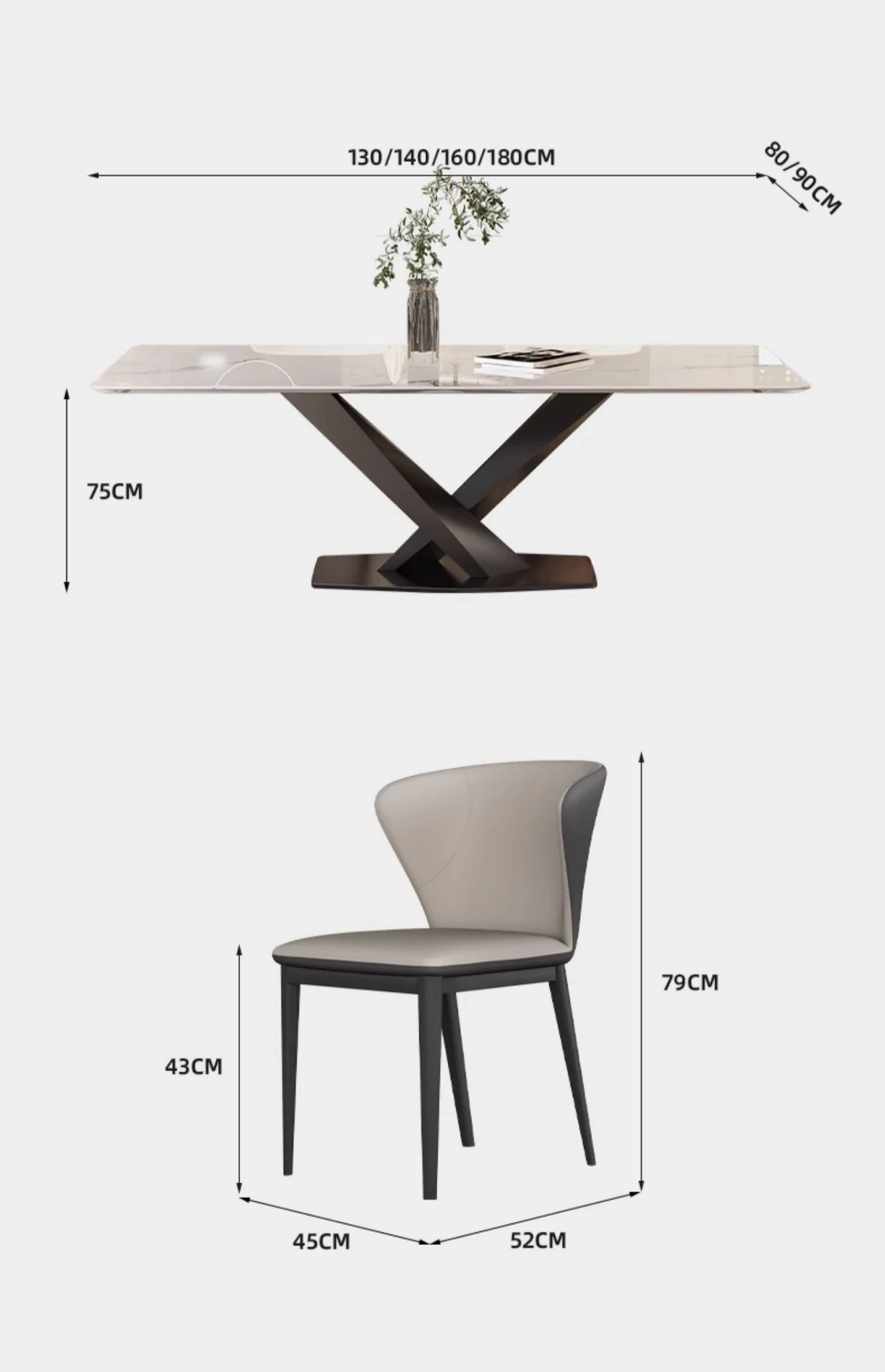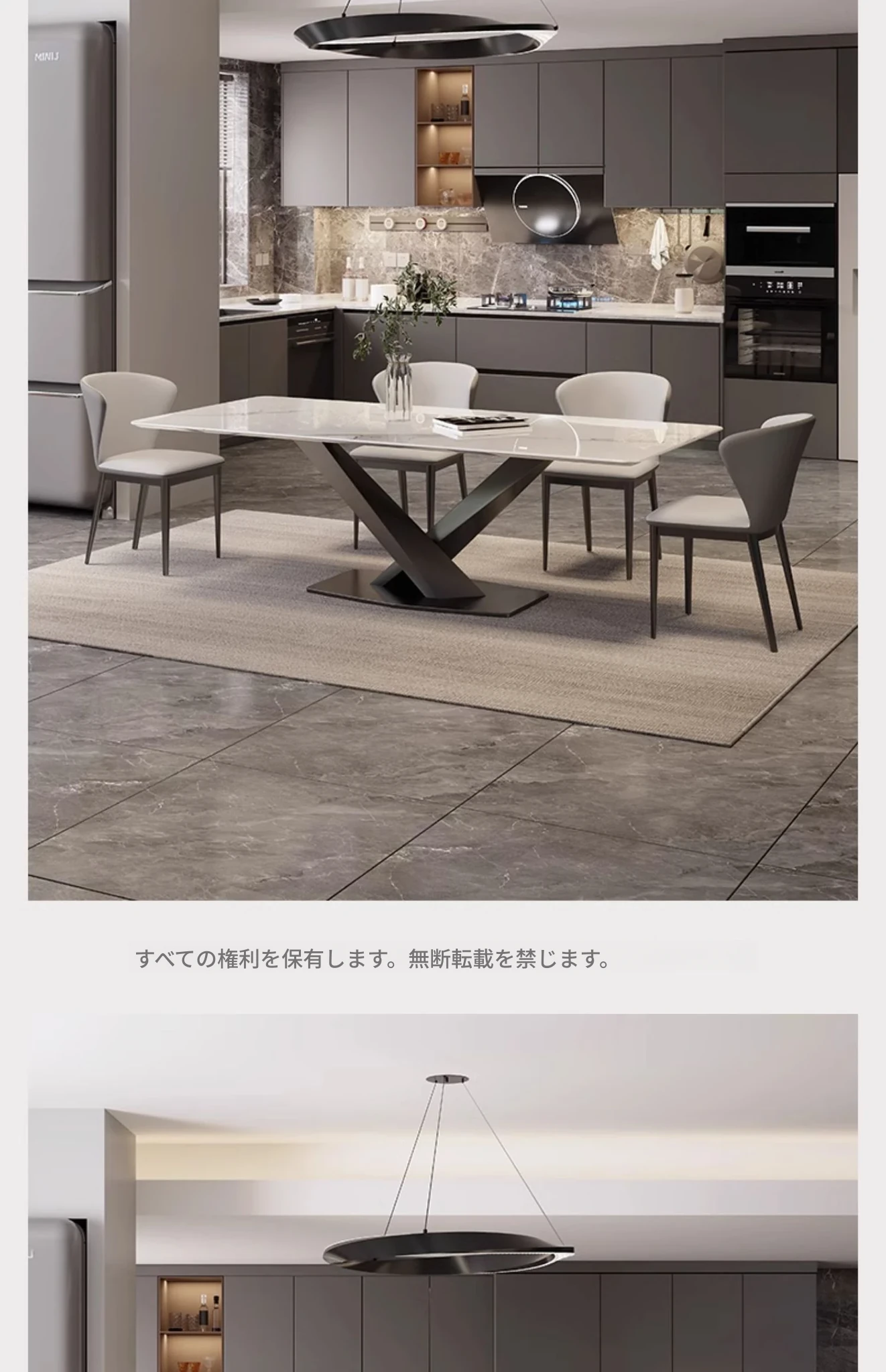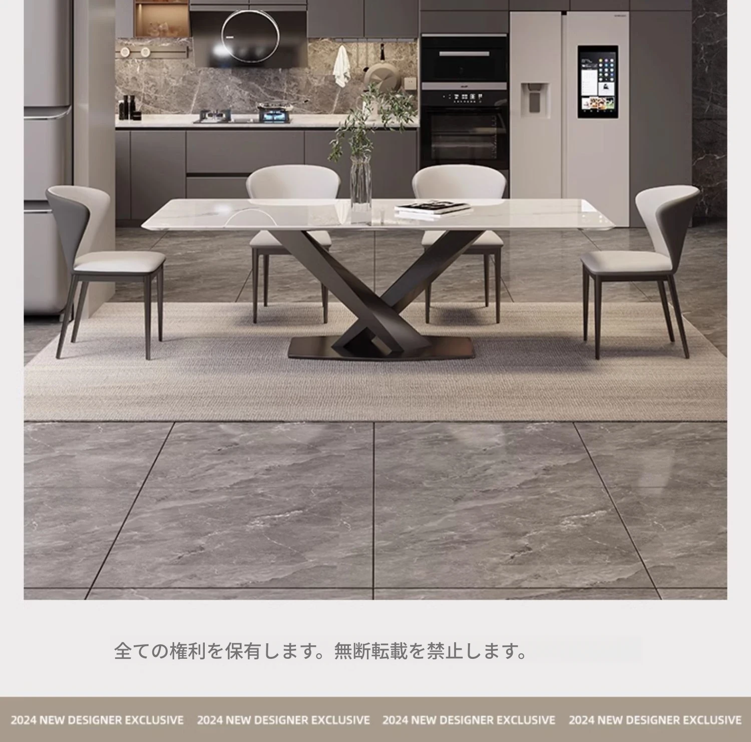 1.8m天然大理石ダイニングテーブル+キャットグラブレザー椅子*4