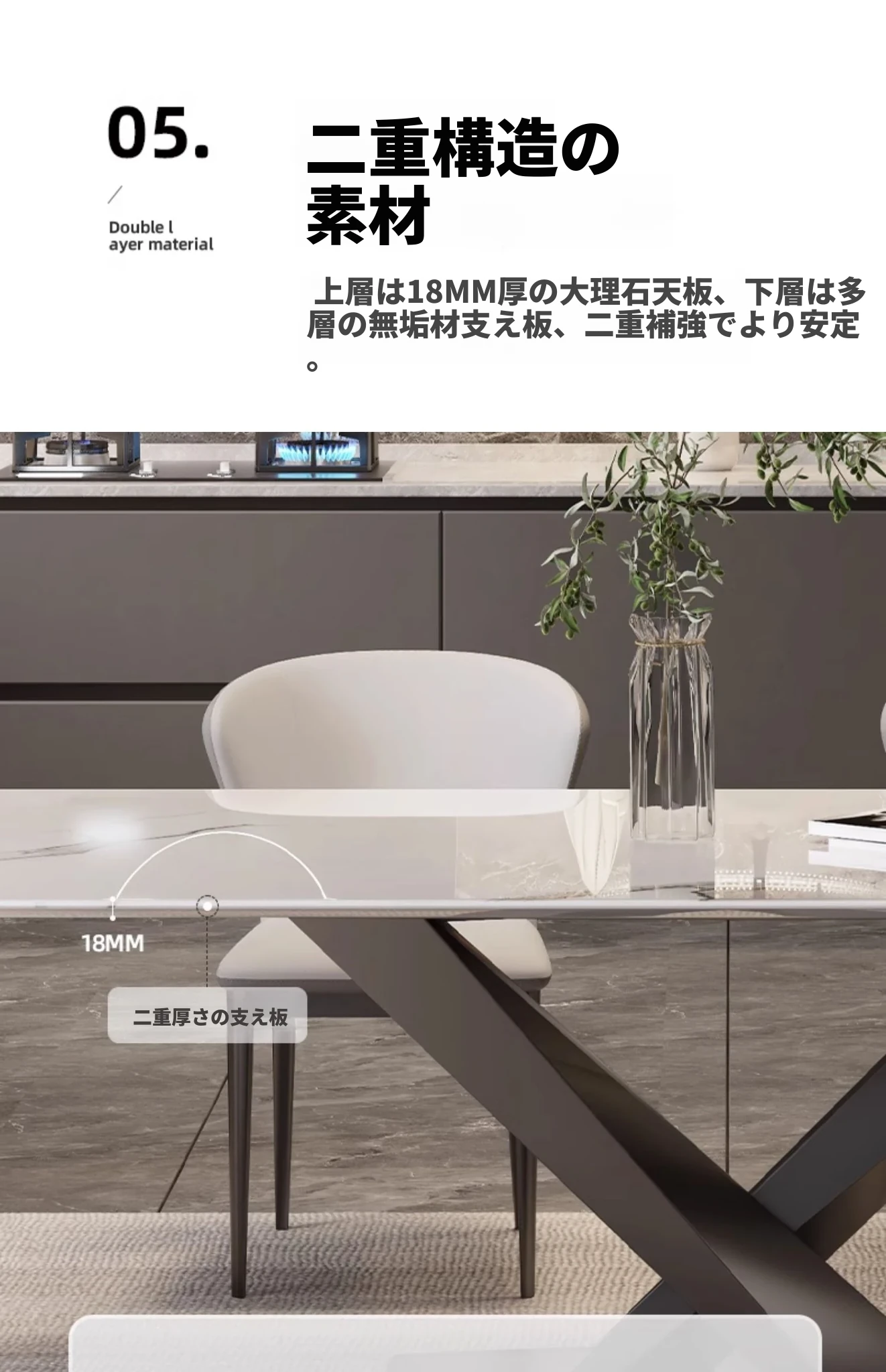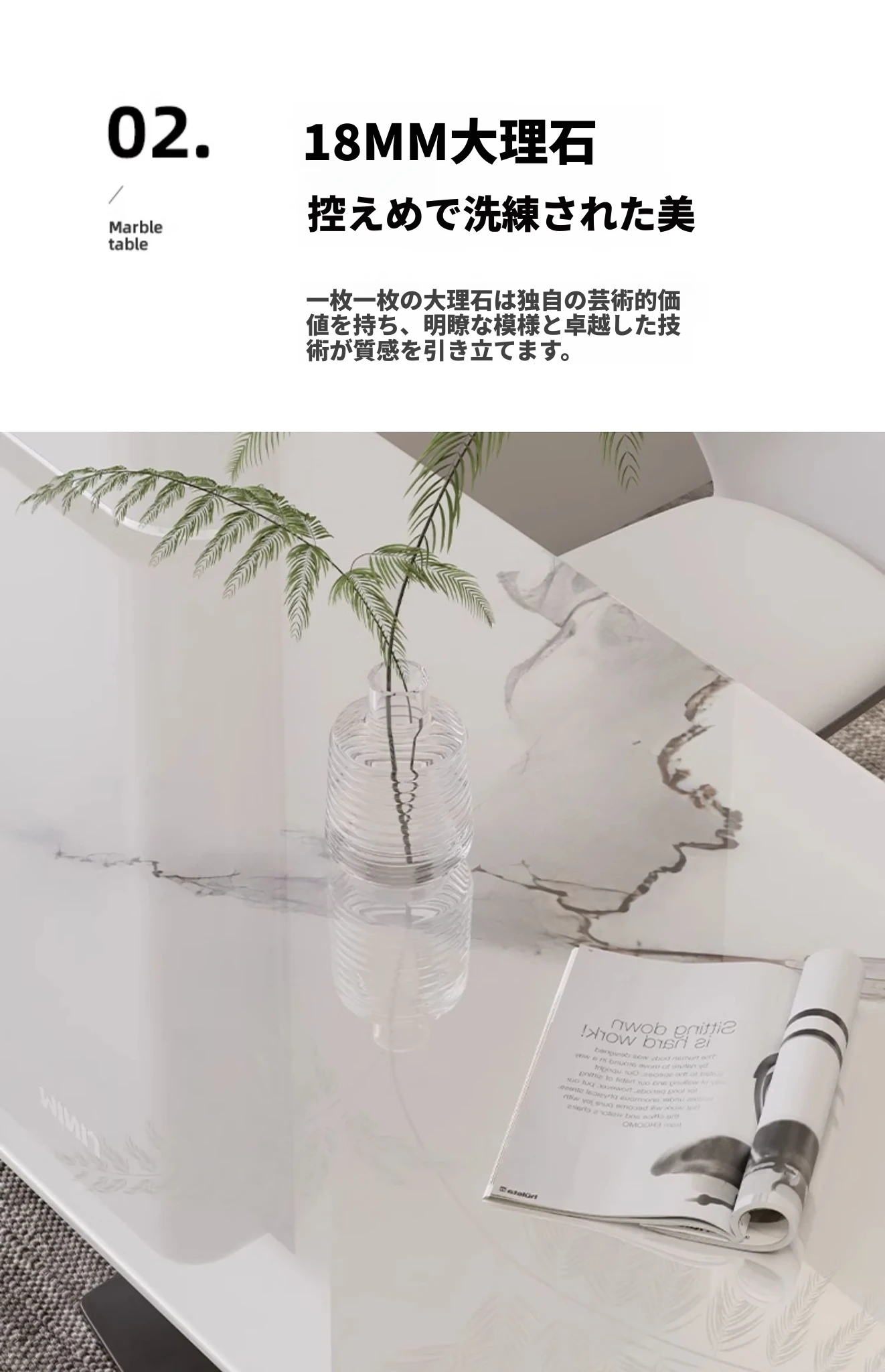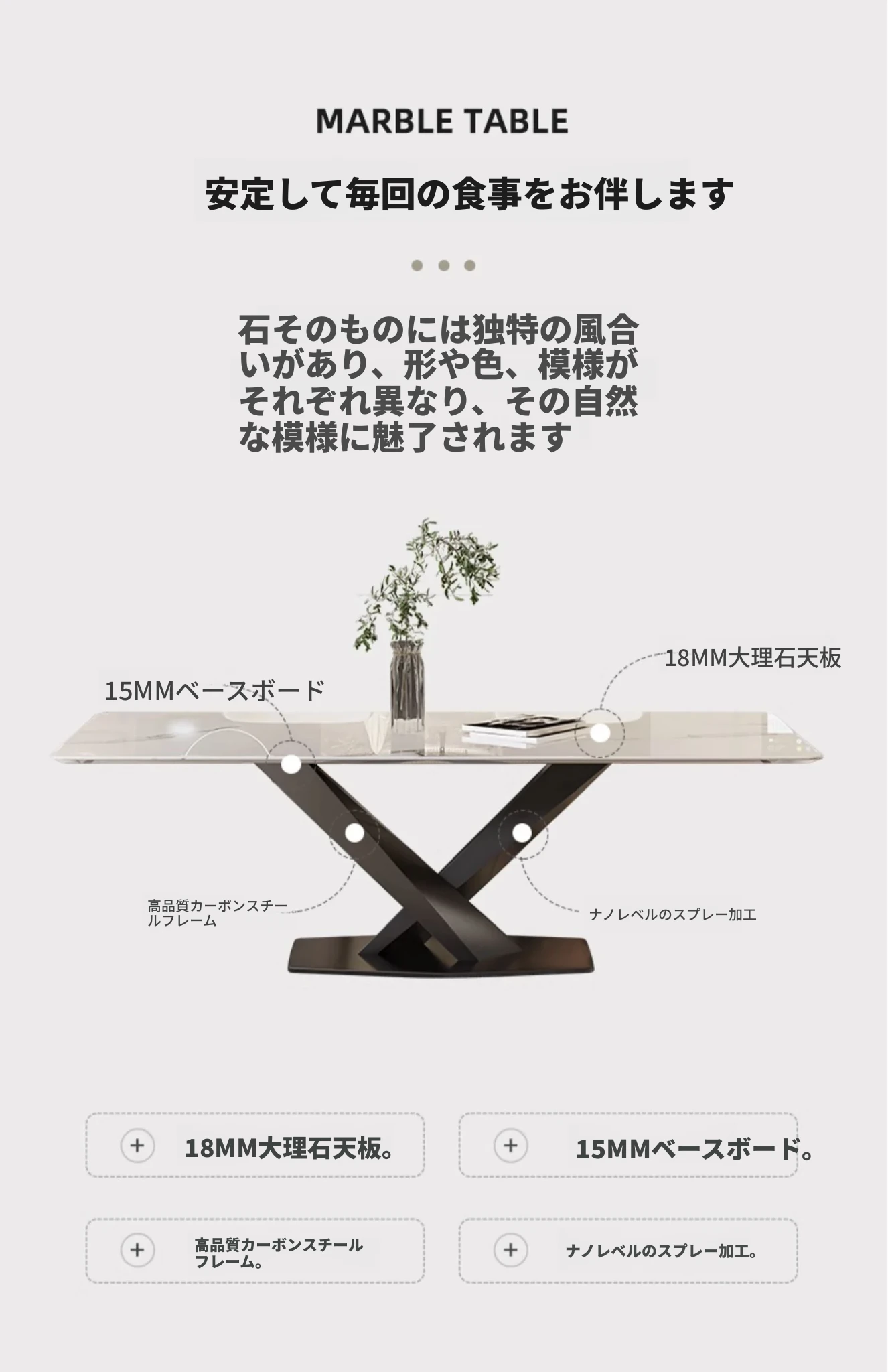 1.8m天然大理石ダイニングテーブル【18mmアップグレード厚み】