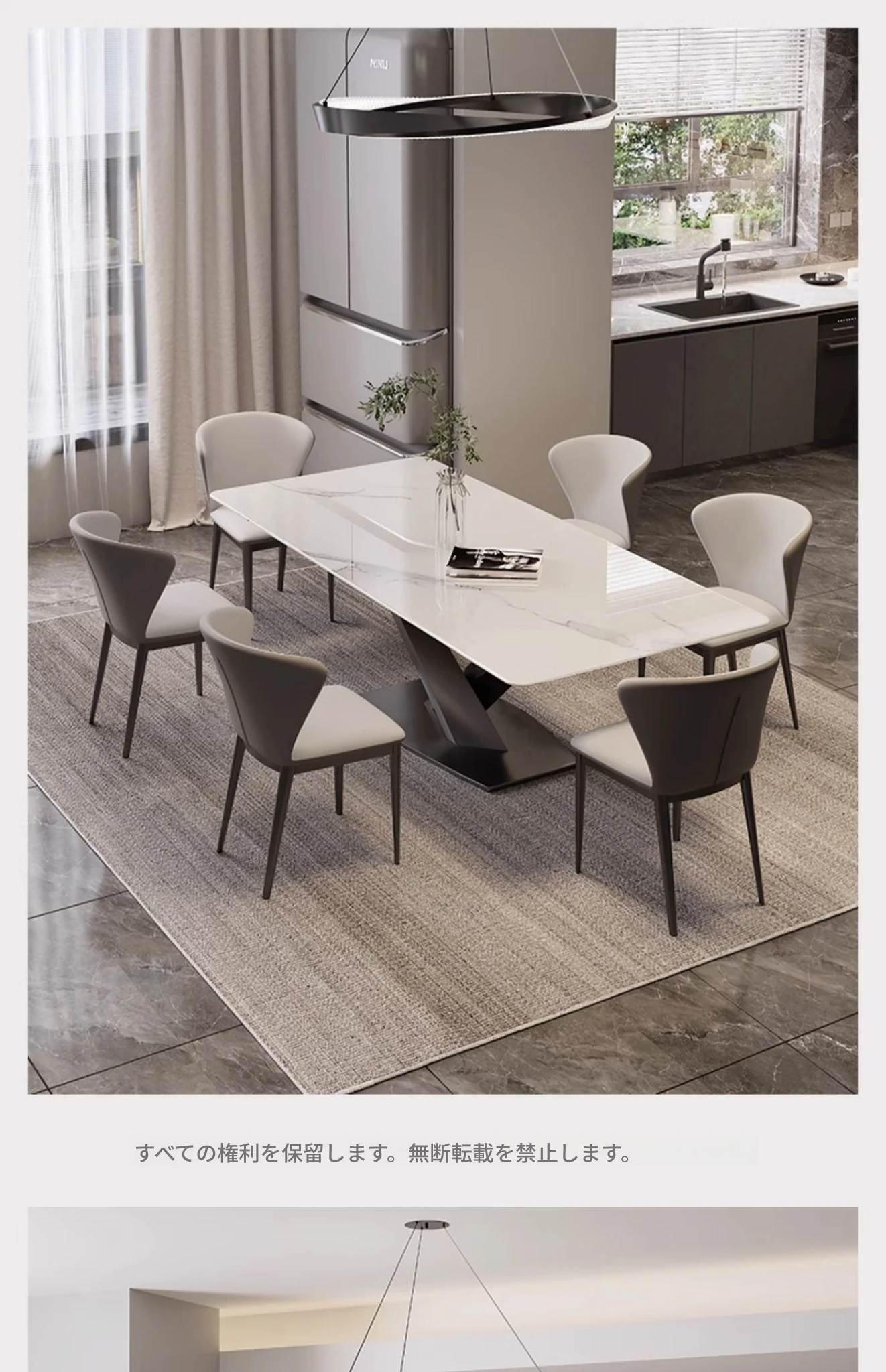 1.4m天然大理石ダイニングテーブル+キャットグラブレザー椅子*6