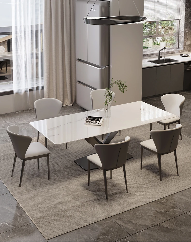 1.6m天然大理石ダイニングテーブル+キャットグラブレザー椅子*6