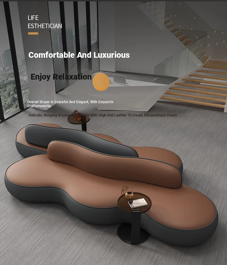 Elegant Leather Sofa for Sales Office Meetings, Hotel Lobbies, Business Reception Areas, and Bank Waiting Rooms - Perfect for Comfort and Style