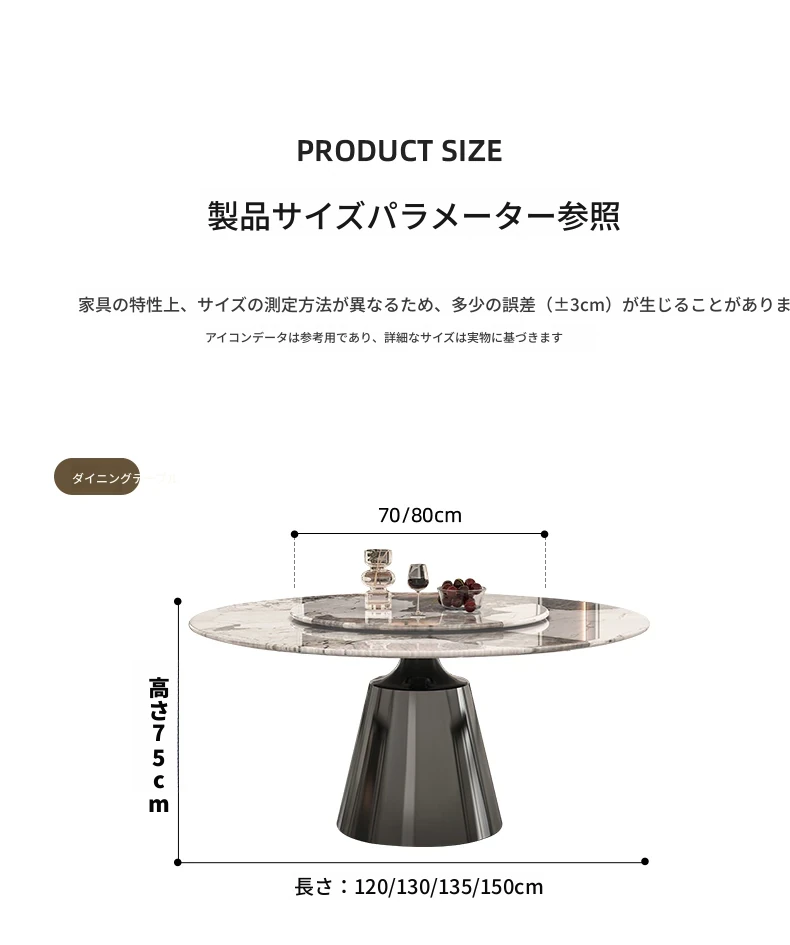 1.3M天然微晶石ダイニングテーブル【回転托】