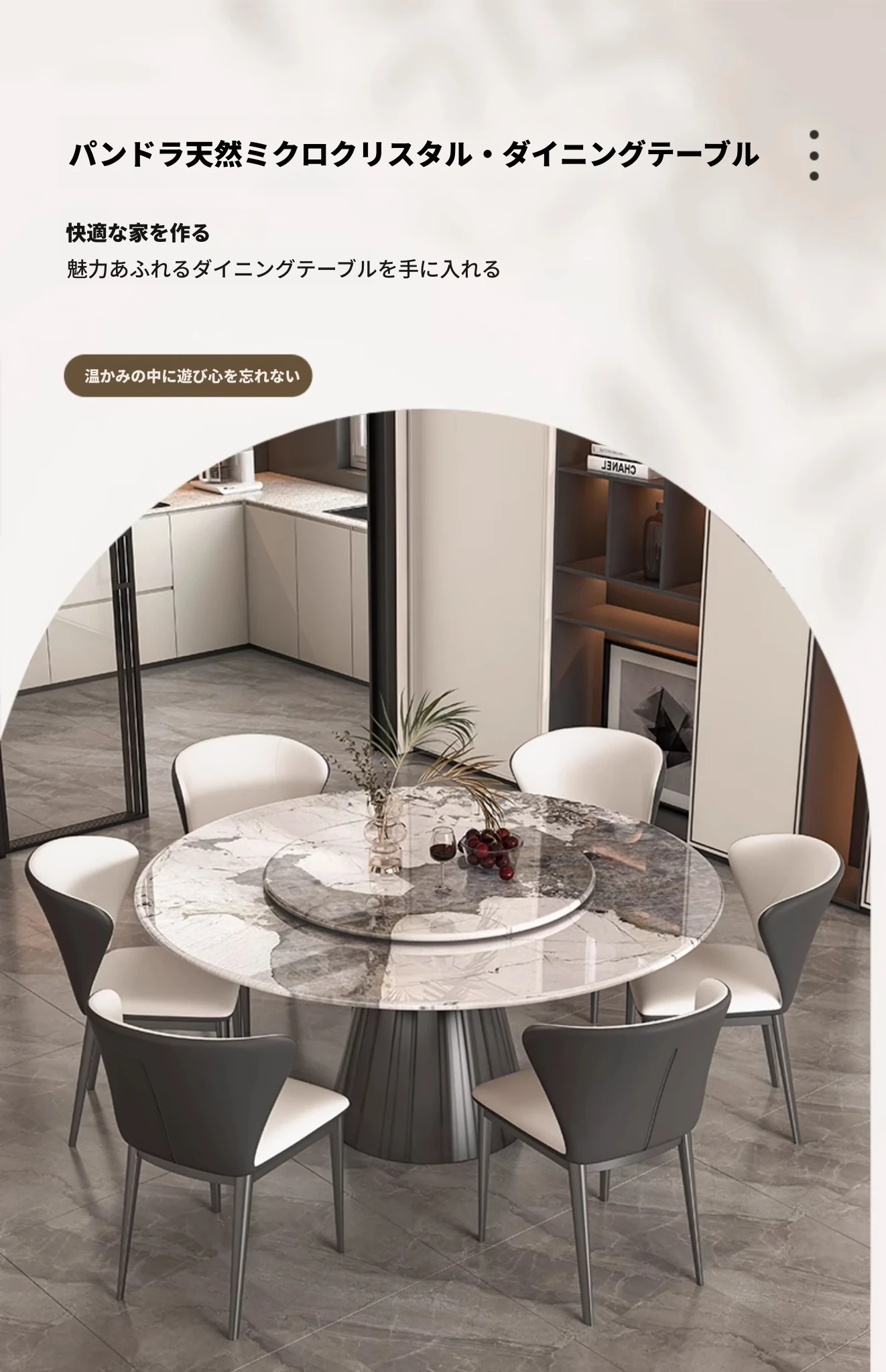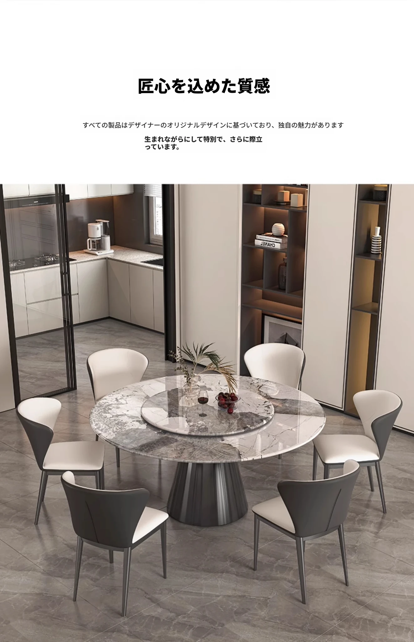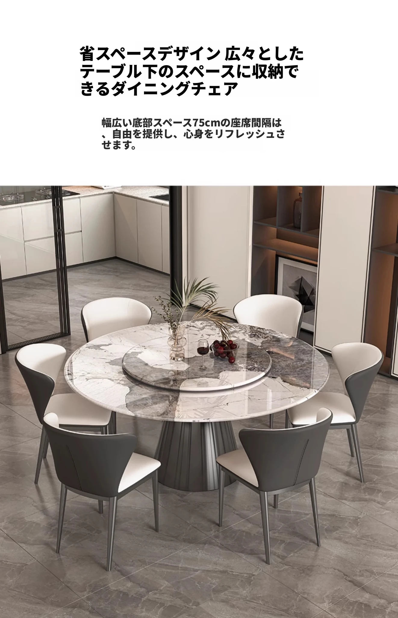 1.5M天然微晶石ダイニングテーブル【回転托】+猫爪皮製ダイニングチェア6脚