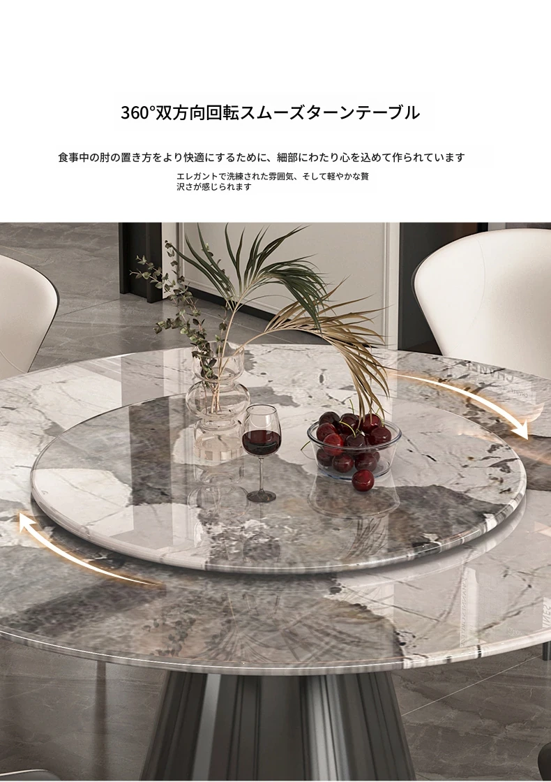 1.35M天然微晶石ダイニングテーブル【回転托】+猫爪皮製ダイニングチェア6脚