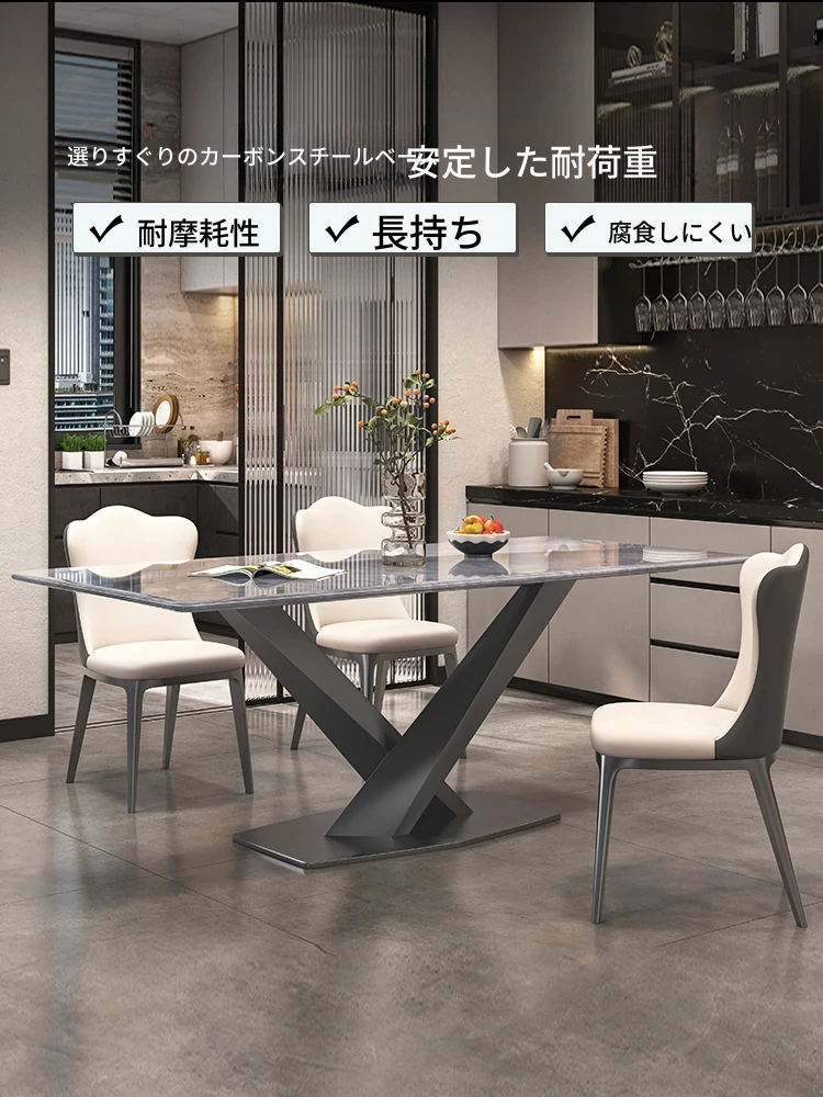 1.4M天然微結晶石ダイニングテーブル+高級キャットクロー皮製ダイニングチェア6脚