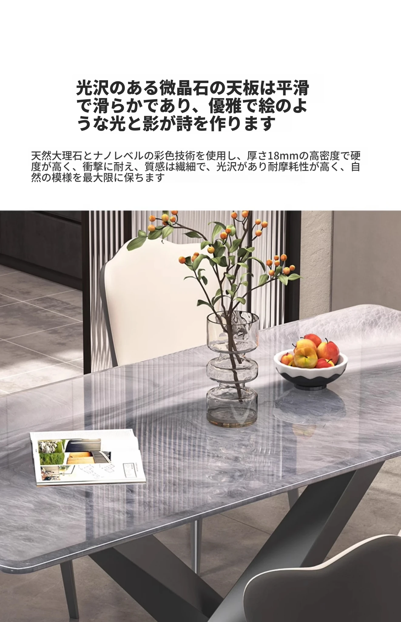 1.8M天然微結晶石ダイニングテーブル