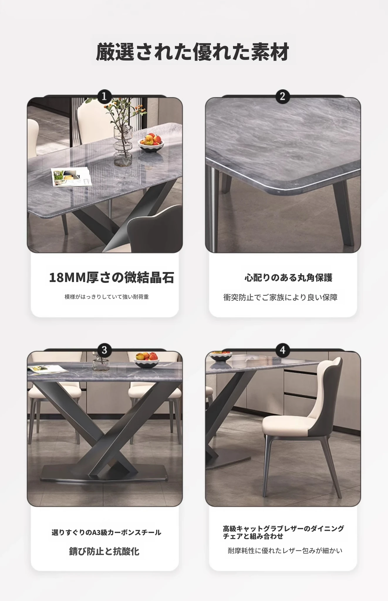 1.6M天然微結晶石ダイニングテーブル+高級キャットクロー皮製ダイニングチェア4脚