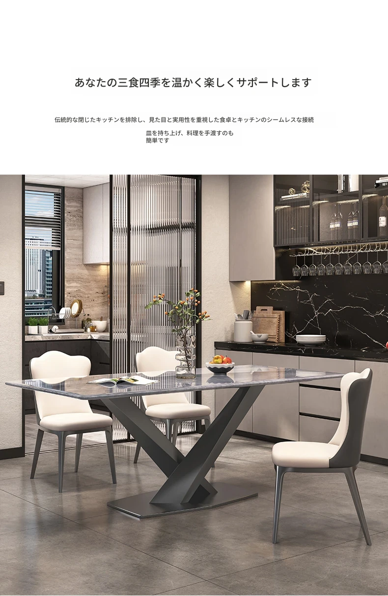 1.8M天然微結晶石ダイニングテーブル+高級キャットクロー皮製ダイニングチェア6脚