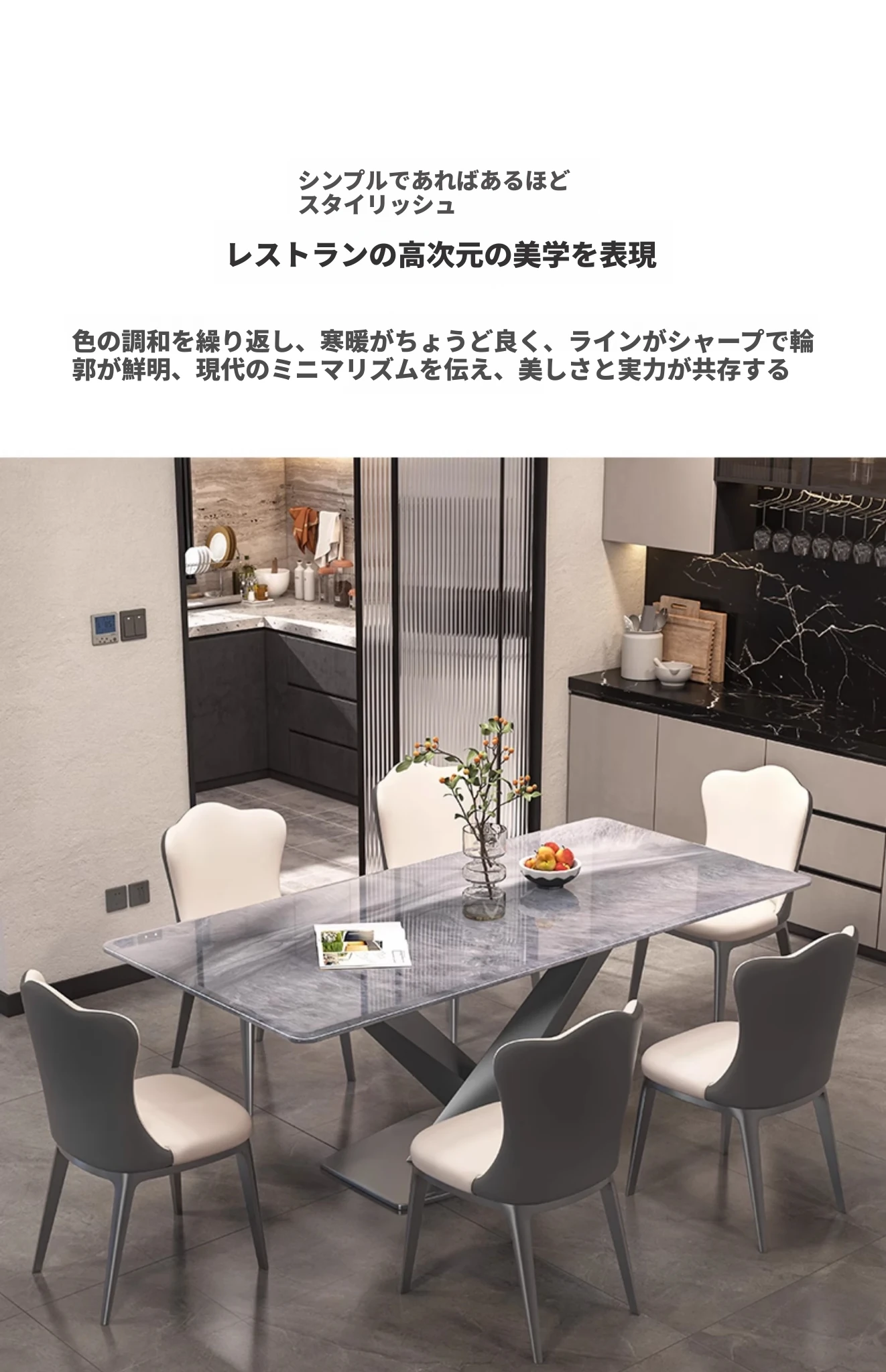 1.3M天然微結晶石ダイニングテーブル+高級キャットクロー皮製ダイニングチェア6脚