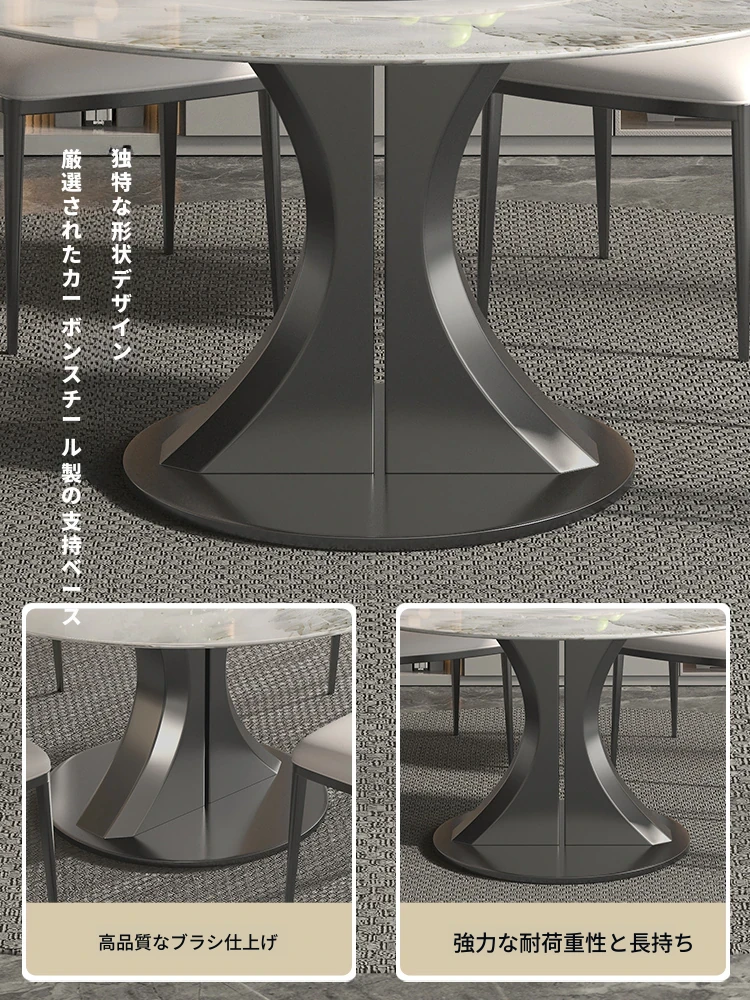 1.2M天然大理石ダイニングテーブル(回転盤付き)+猫の爪研ぎ皮製ダイニングチェア*6