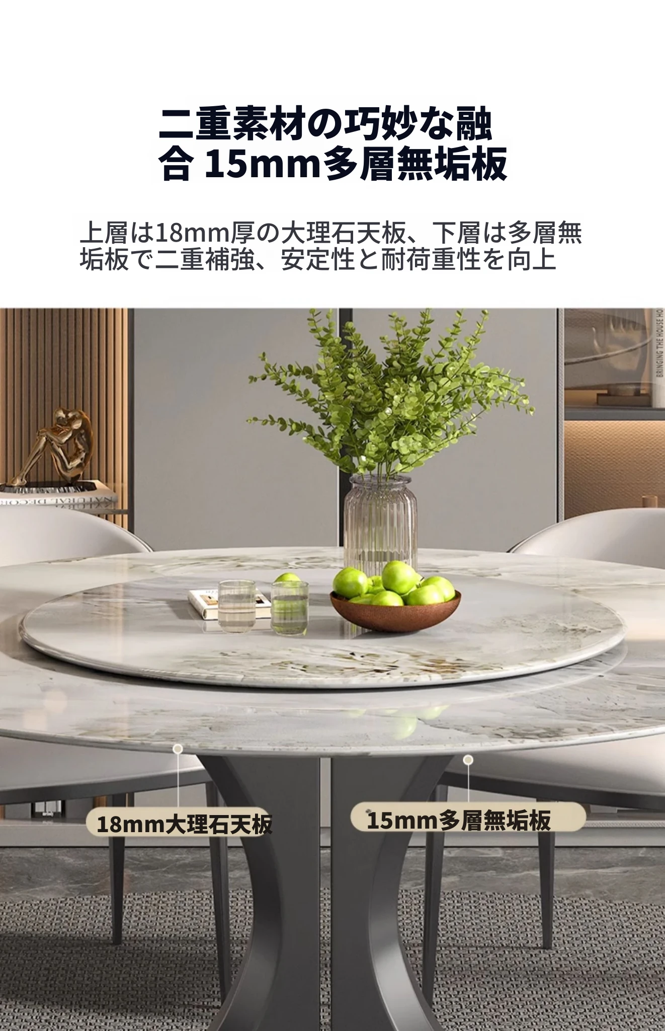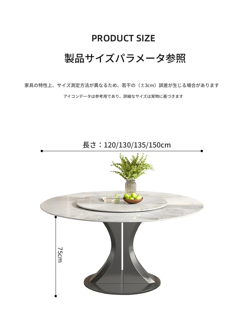 1.5M天然大理石ダイニングテーブル(回転盤付き)
