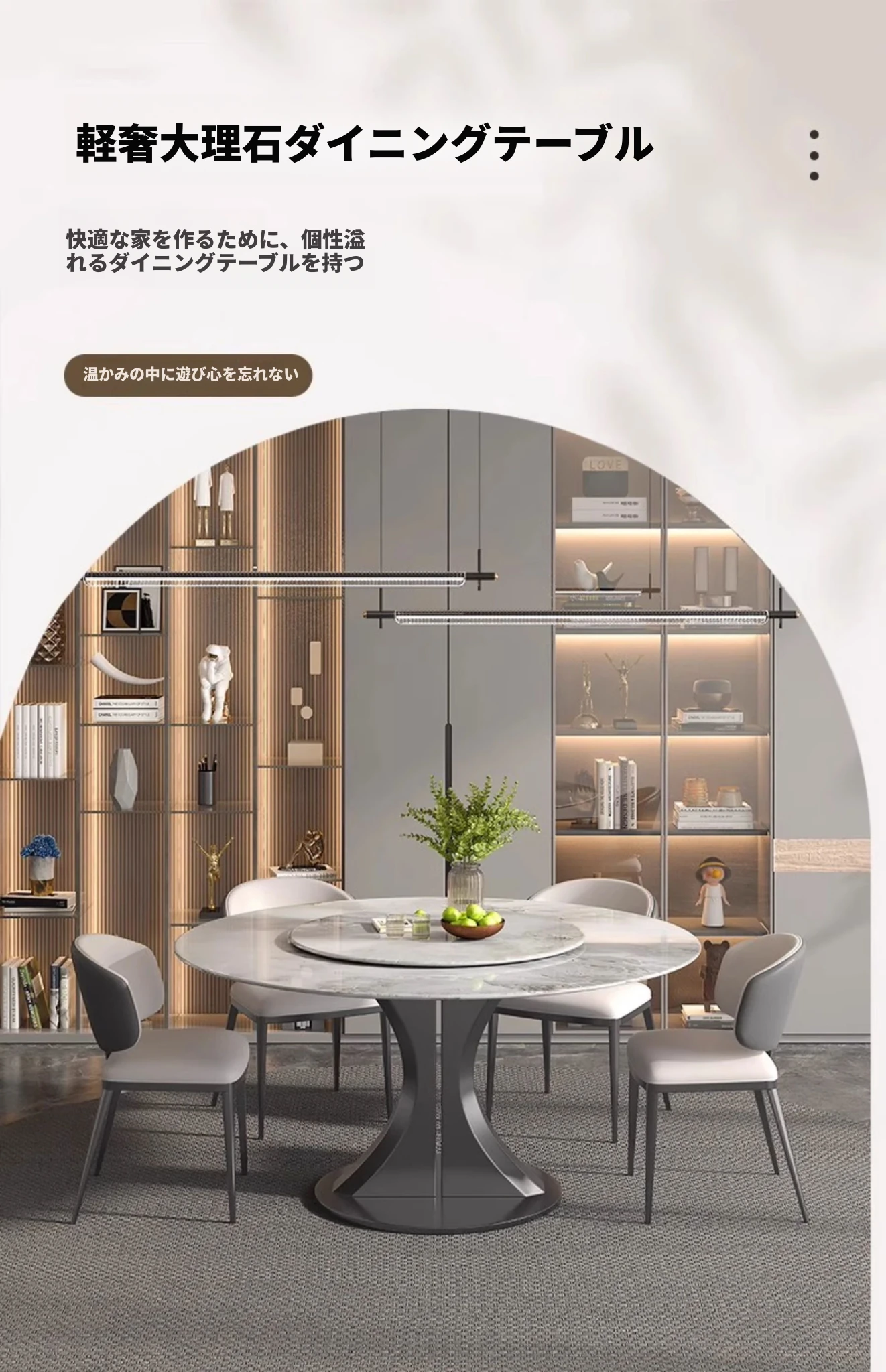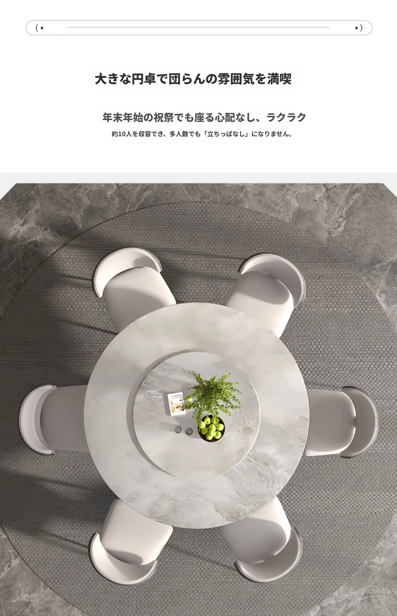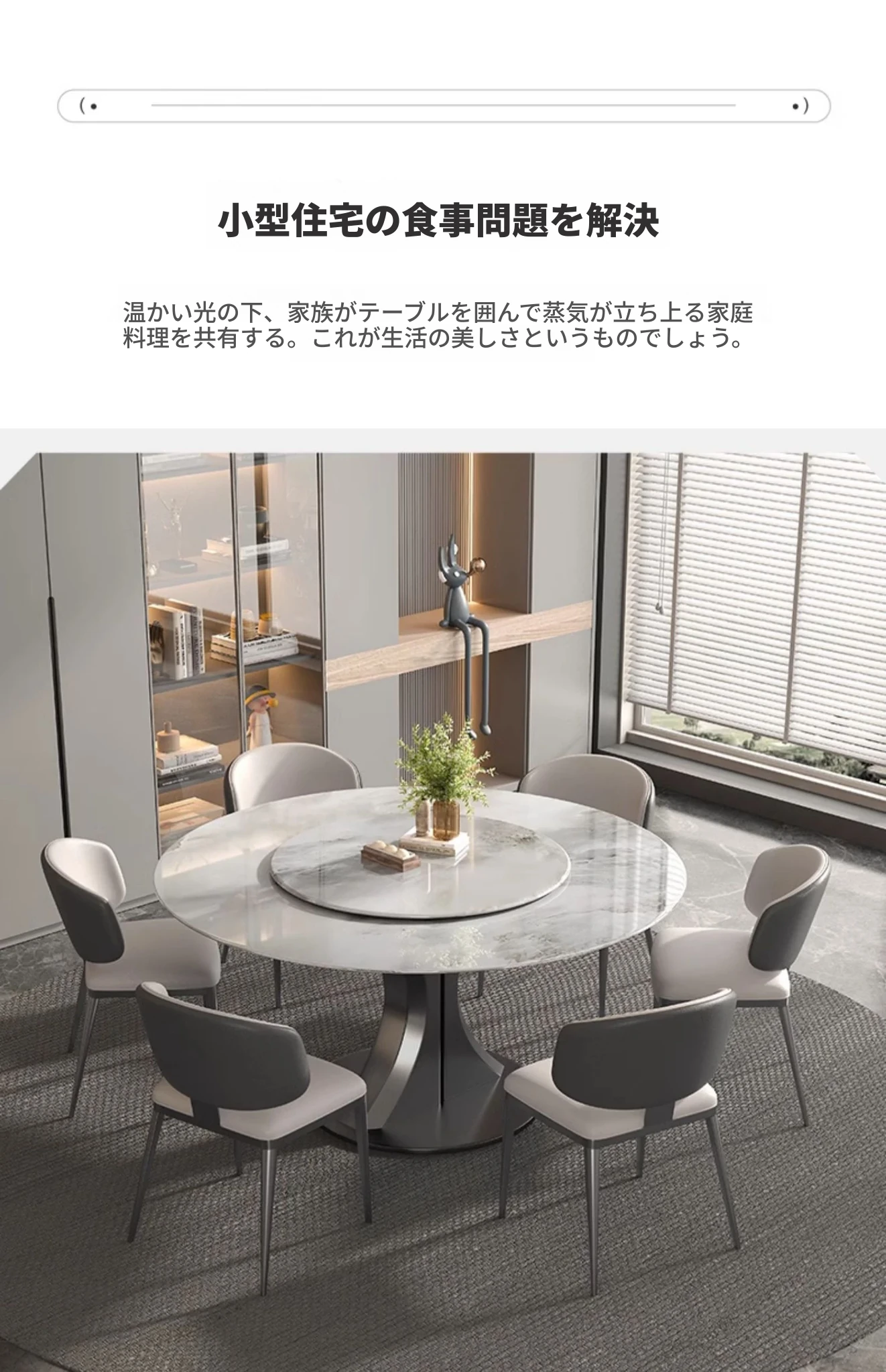 1.3M天然大理石ダイニングテーブル(回転盤付き)