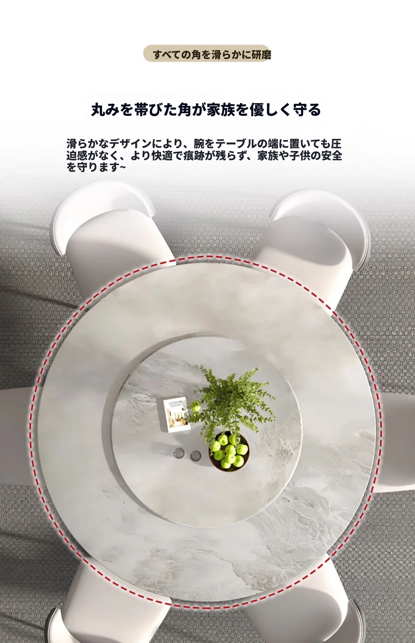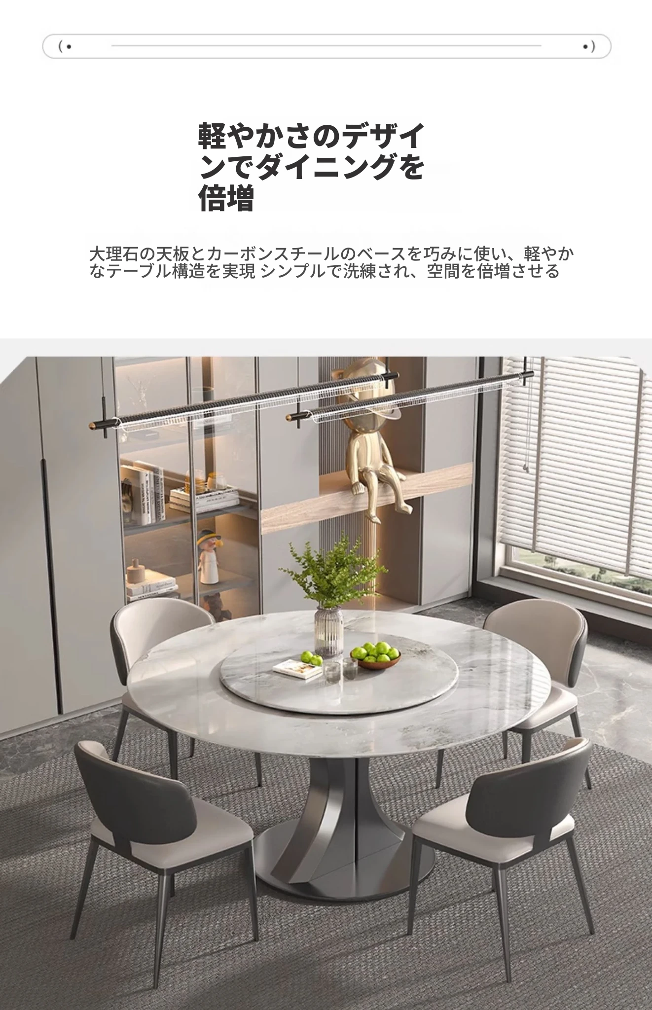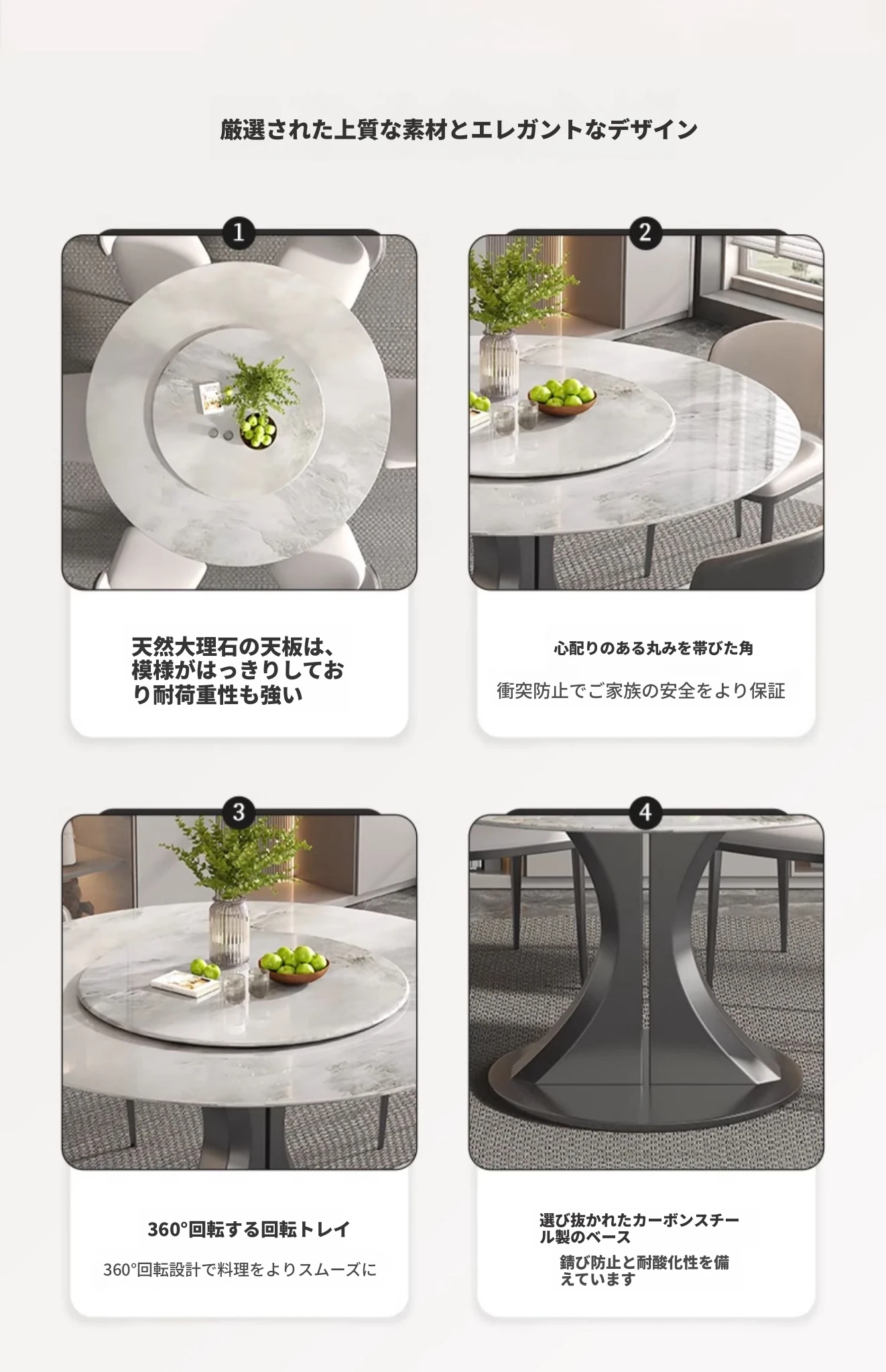 1.35M天然大理石ダイニングテーブル(回転盤付き)