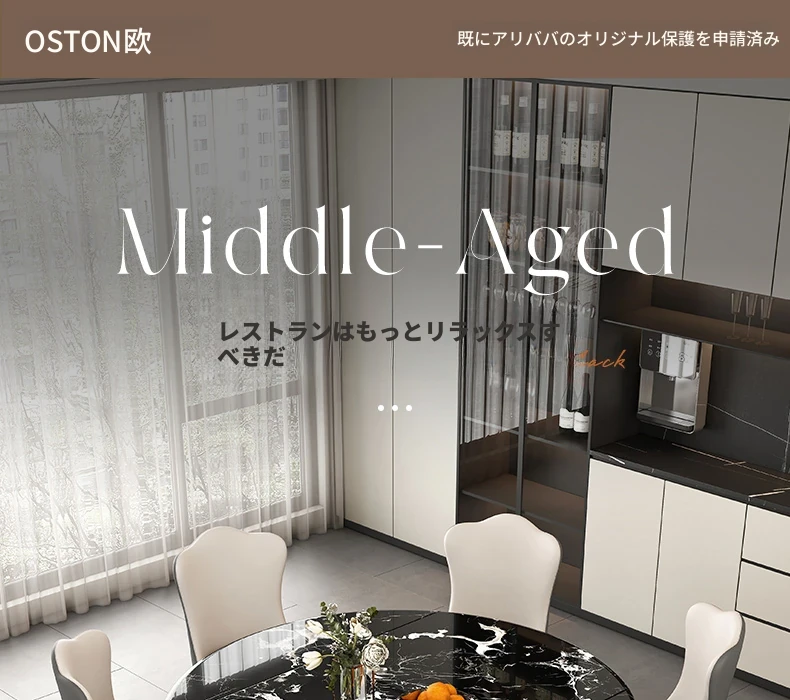 回転式ダイニングテーブル(天然大理石)+キャットスクラッチレザー椅子*6