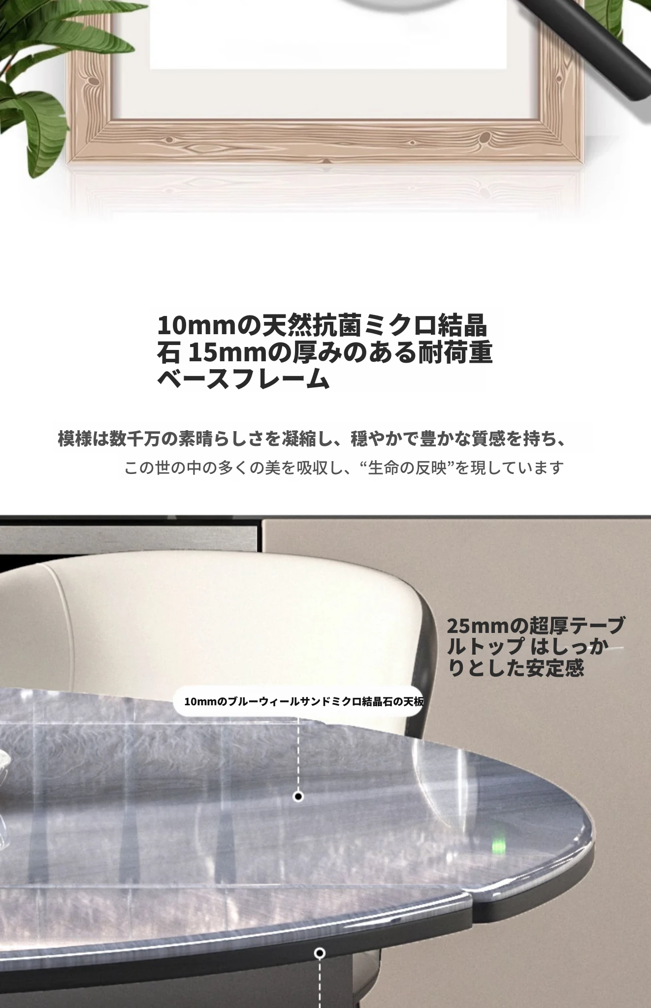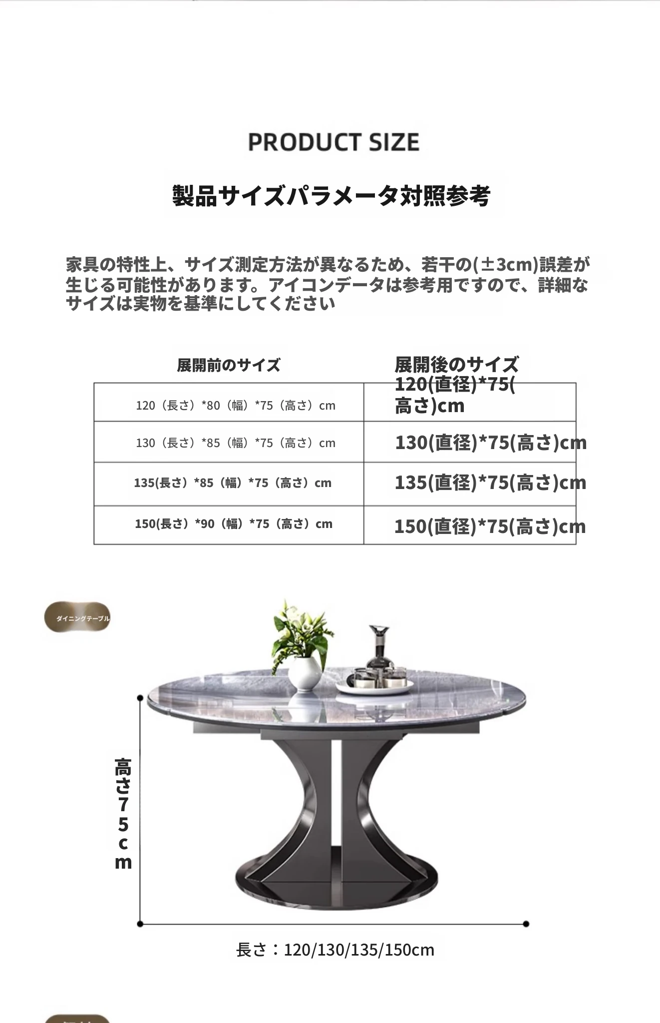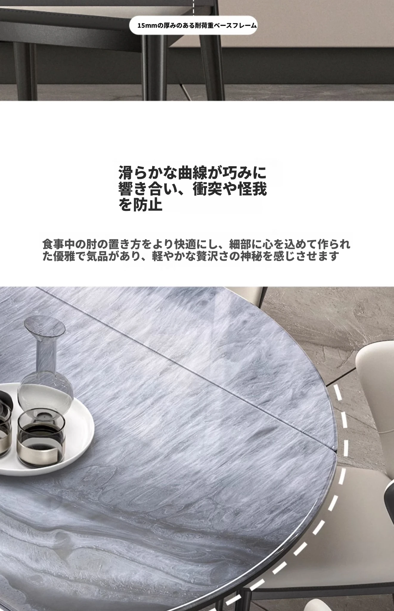 1.5M天然微晶石伸縮ダイニングテーブル