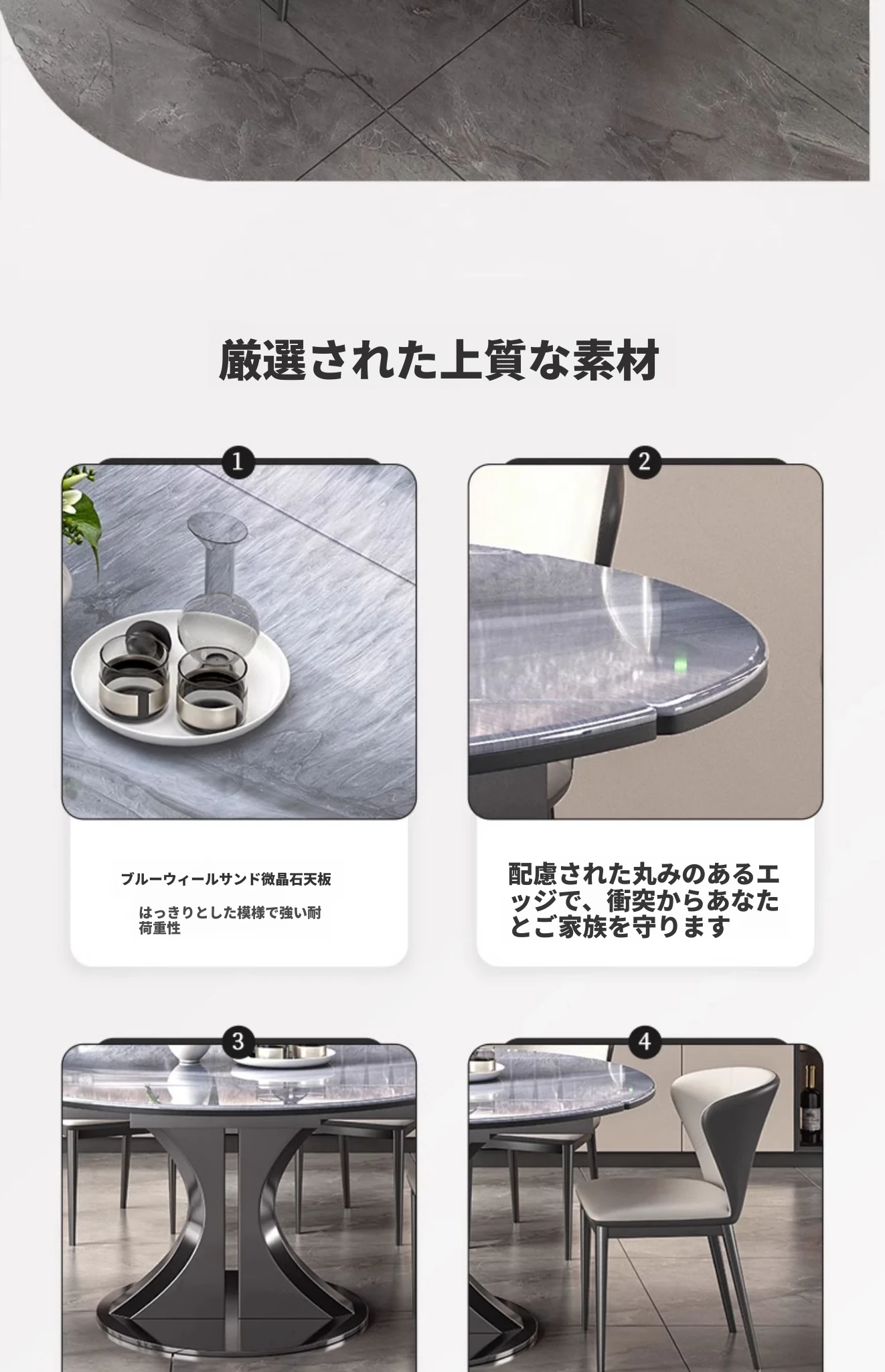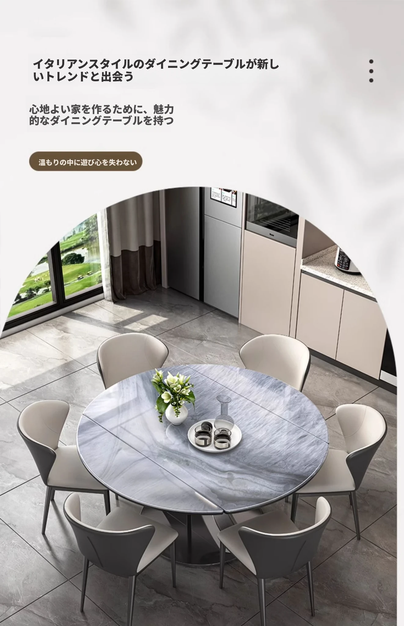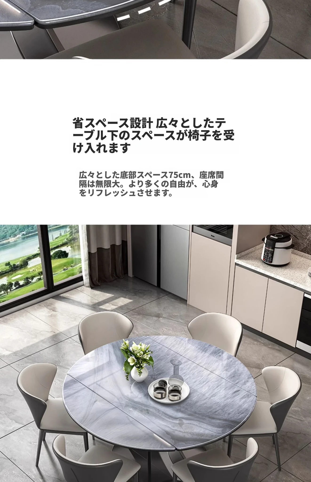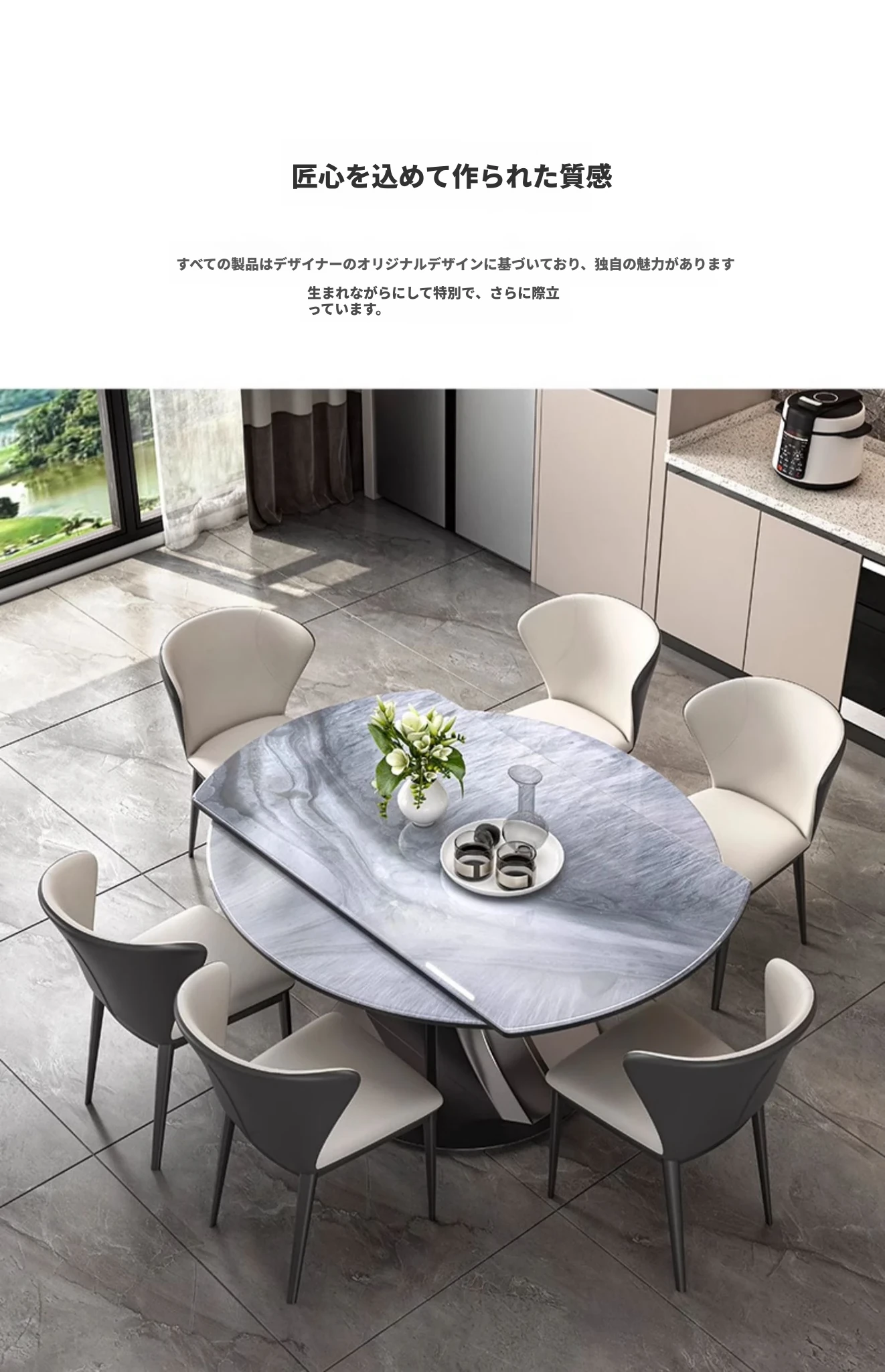 1.35M天然微晶石伸縮ダイニングテーブル