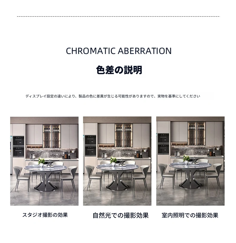 1.5M天然微晶石伸縮ダイニングテーブル+猫爪皮製ダイニングチェア*6