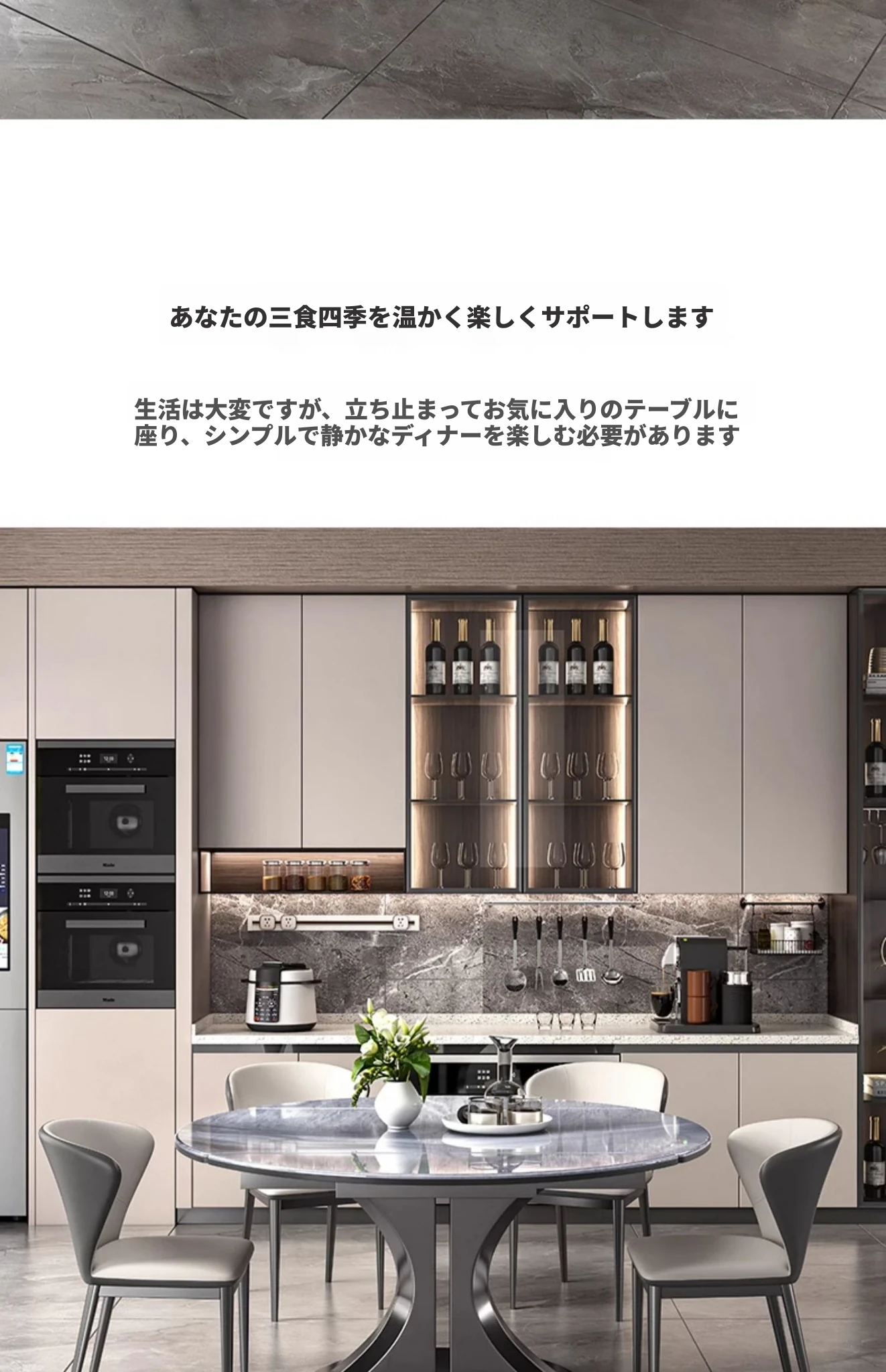 1.3M天然微晶石伸縮ダイニングテーブル
