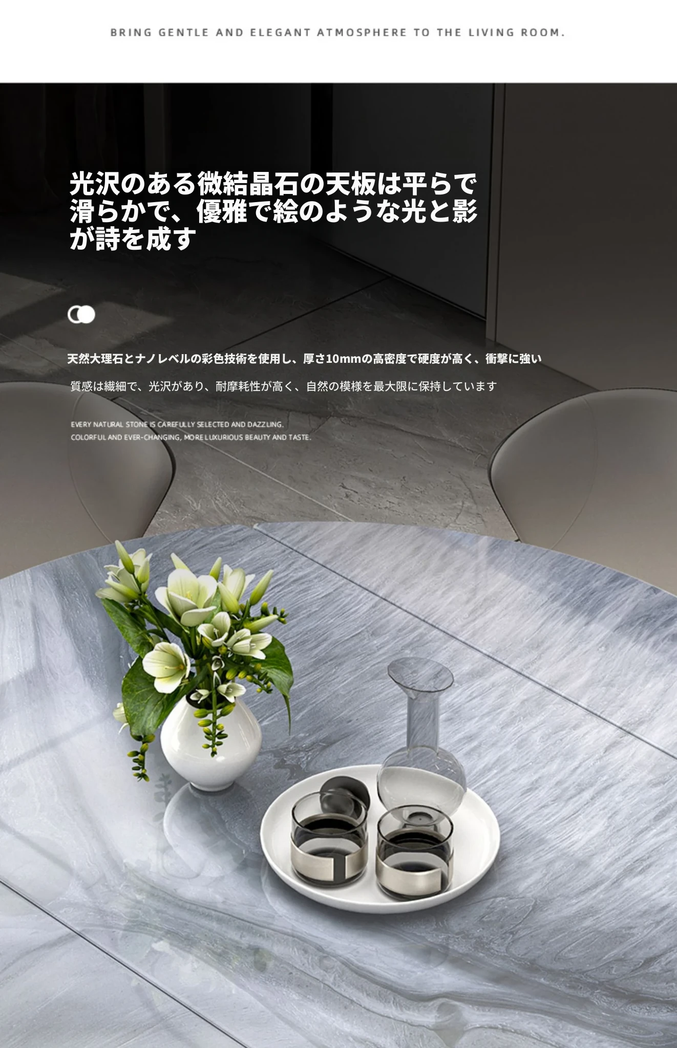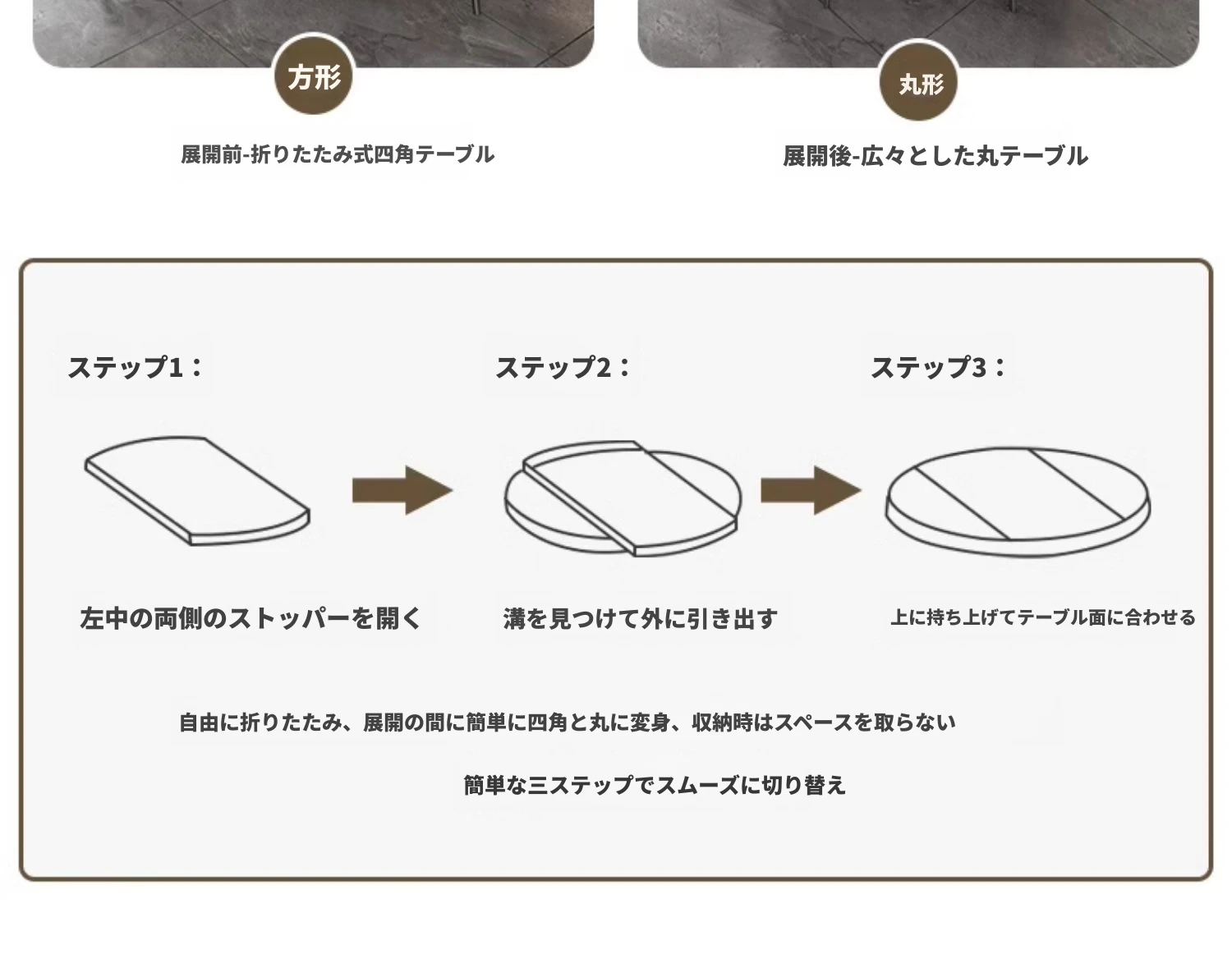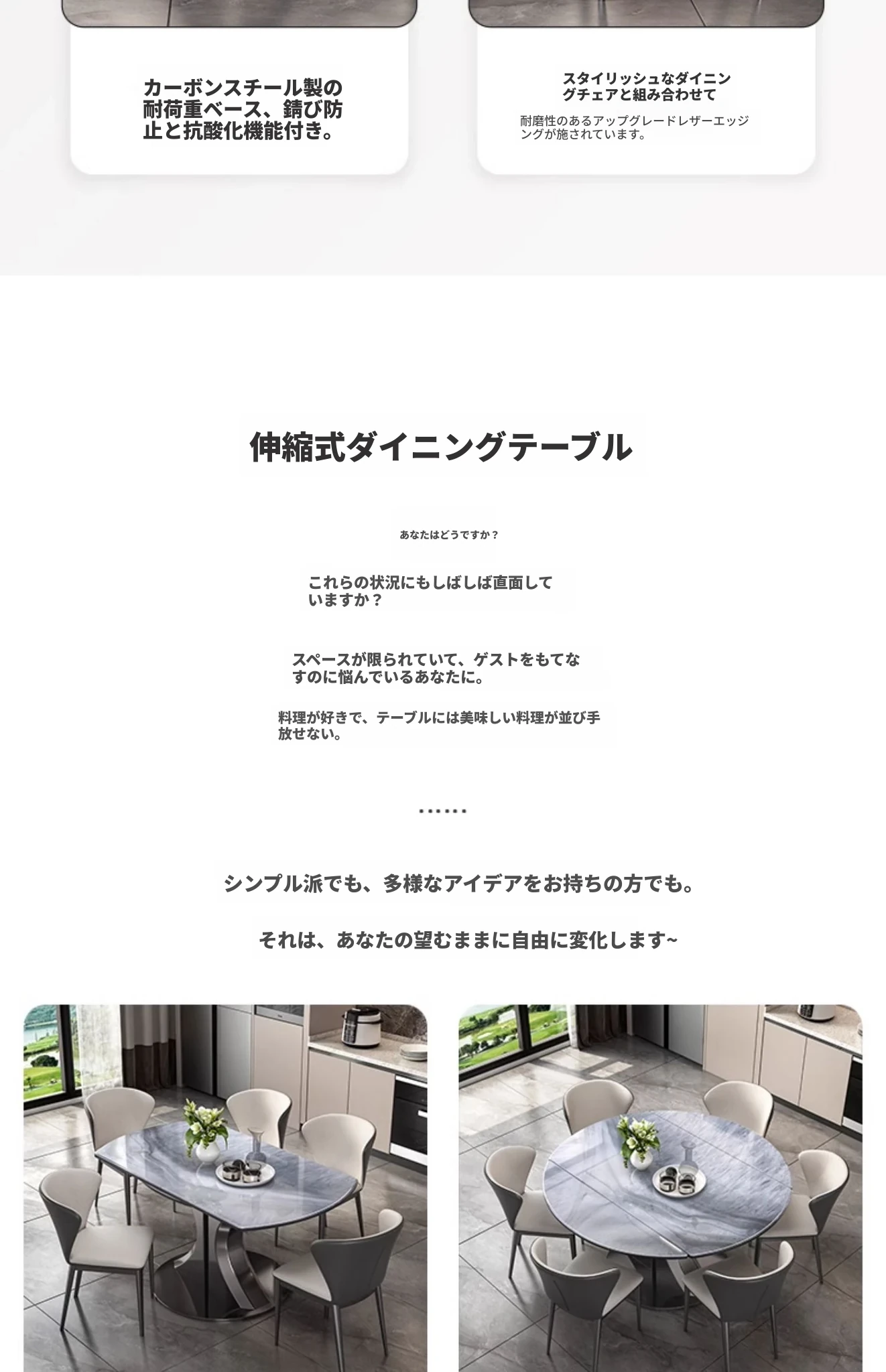 1.2M天然微晶石伸縮ダイニングテーブル
