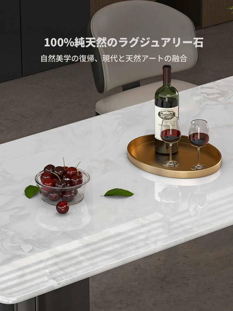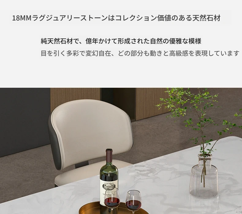新フィンディホワイト天然ラグジュアリーストーンダイニングテーブル+デザイナーダイニングチェア*6