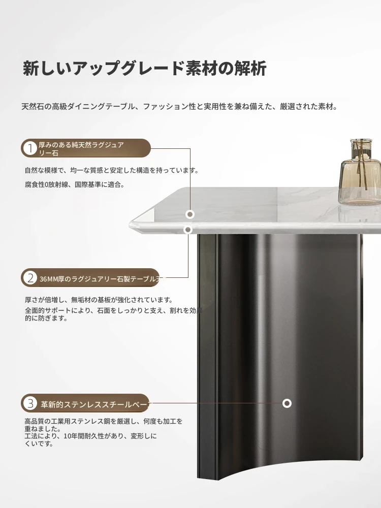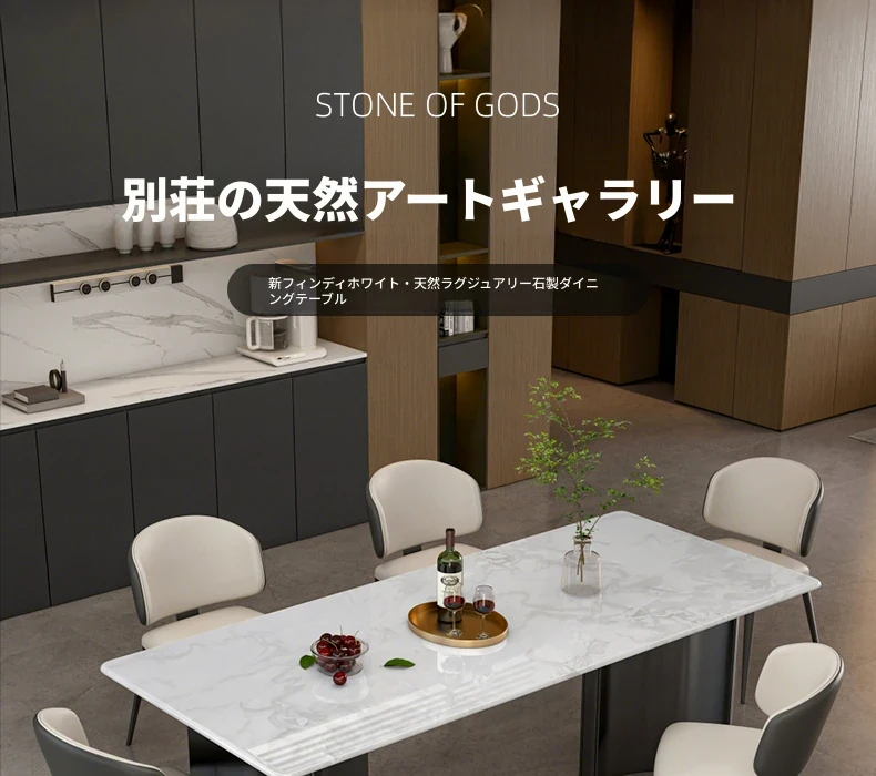 新フィンディホワイト天然ラグジュアリーストーンダイニングテーブル