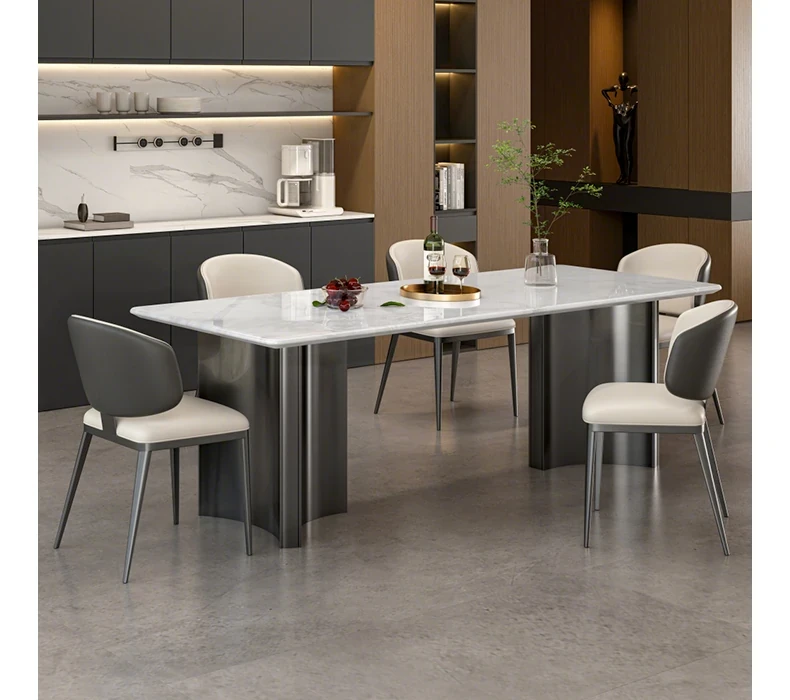 天然ラグジュアリー石材の新フィンディホワイト、軽やかで高級感あふれる家用長方形イタリアンヴィラ大理石ダイニングテーブル&チェアセット。上質なデザインで、特別なひとときを演出します。