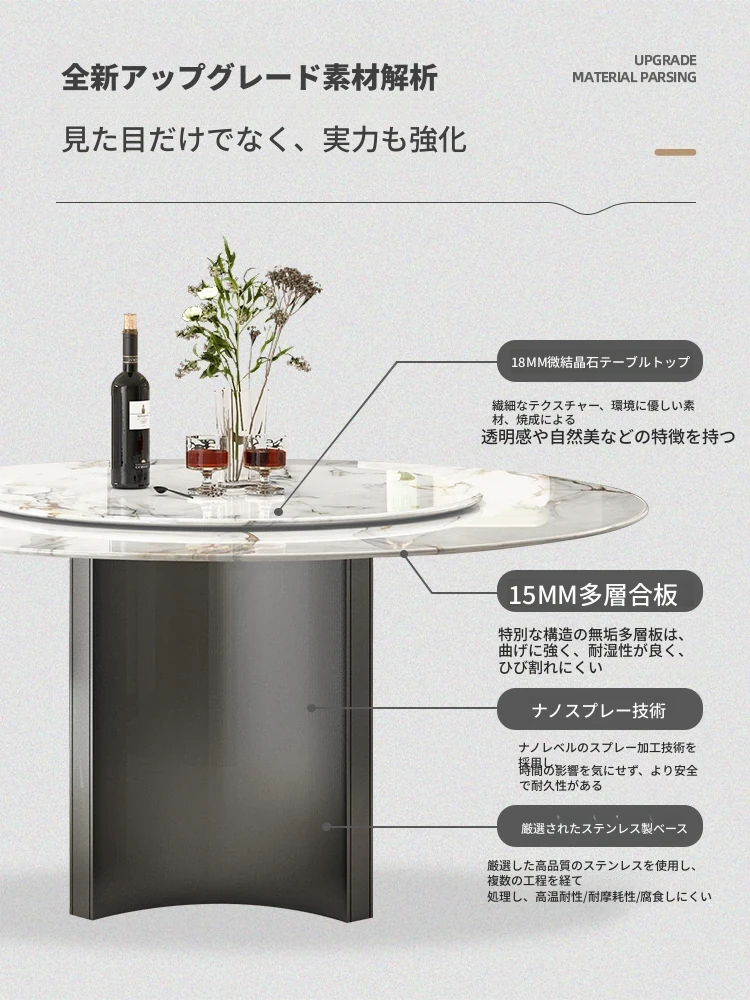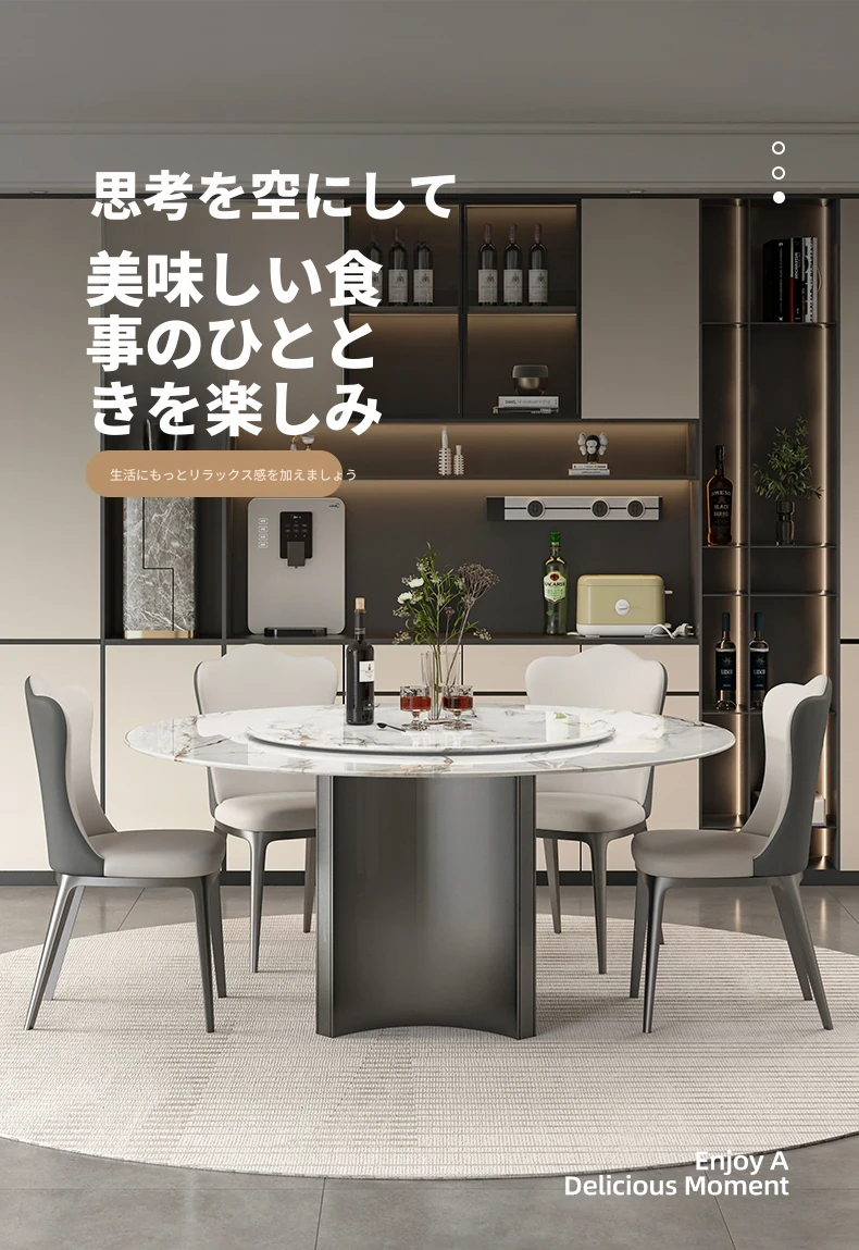 1.5M天然微晶石ダイニングテーブル【回転盤付き】