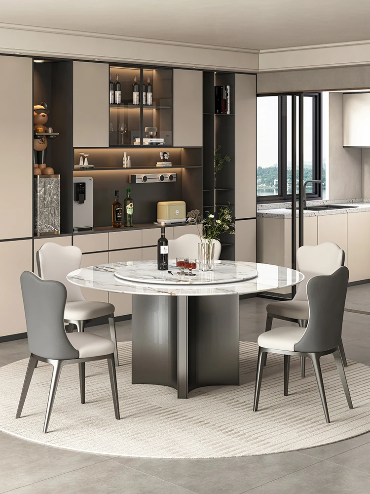 1.5M天然微晶石ダイニングテーブル【回転盤付き】+猫の爪とぎ素材のダイニングチェア*6
