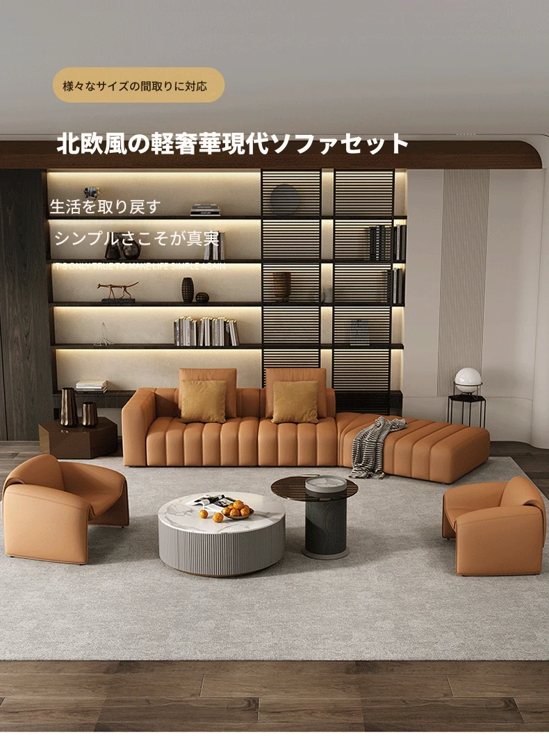 3+1+1+テーブルセット オレンジ色(ソファ260cm)