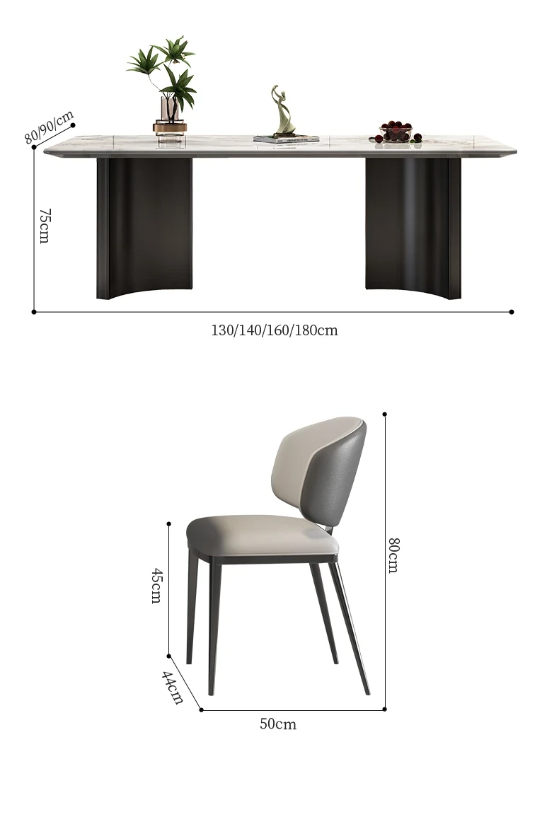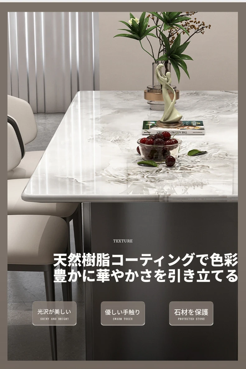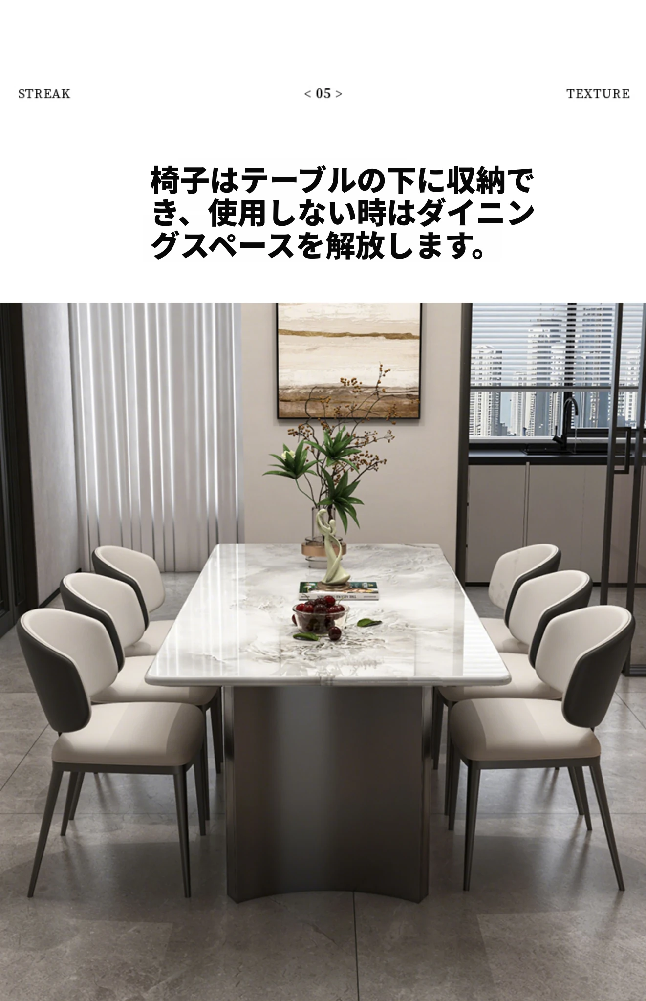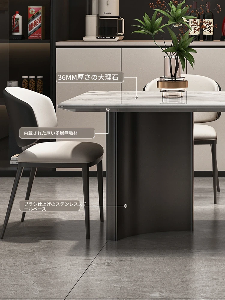 1.8M大理石ダイニングテーブル+猫の爪研ぎ皮製チェア*4
