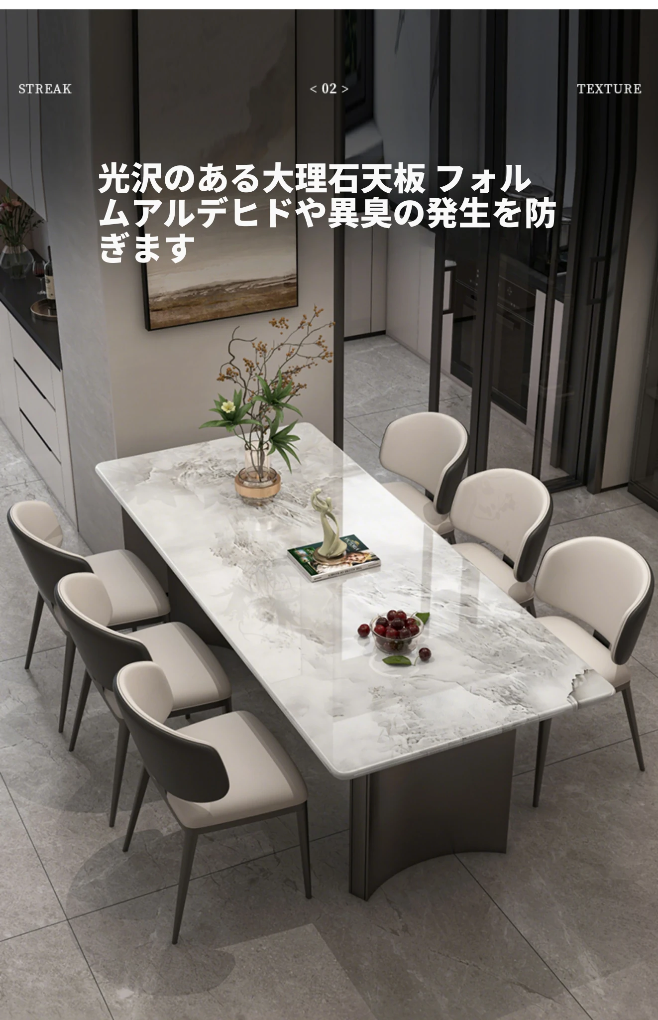 1.8M大理石ダイニングテーブル+猫の爪研ぎ皮製チェア*6