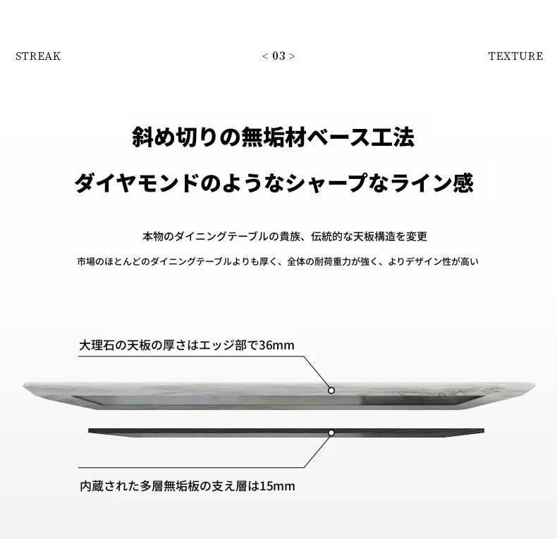 1.3M大理石ダイニングテーブル【36MM厚み増加】