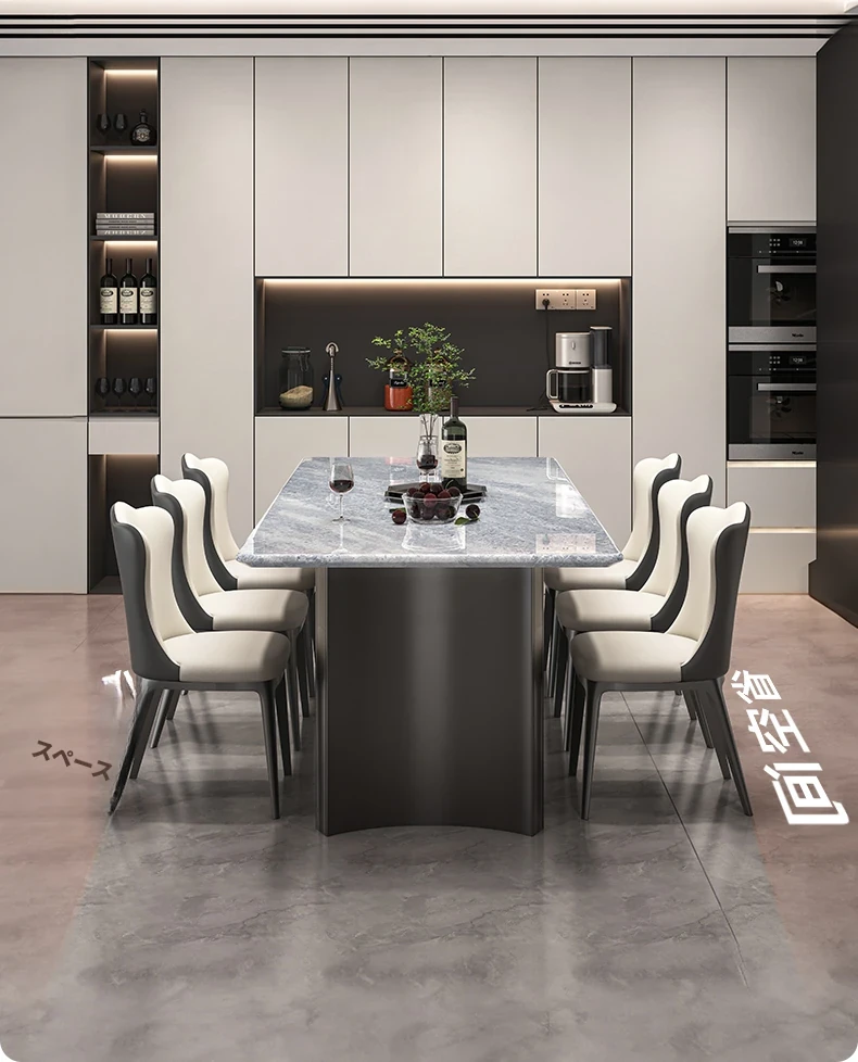 高級感溢れる大理石長方形ダイニングテーブル|ブルークリスタル仕様|新作モダンイタリアンスタイル|別荘や家庭に最適なダイニングセット!