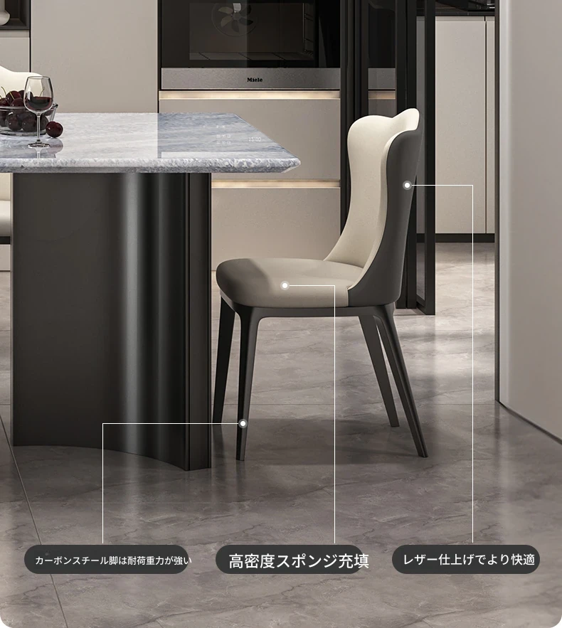 ブルークォーツ大理石のダイニングテーブル+デザイナーチェア*6