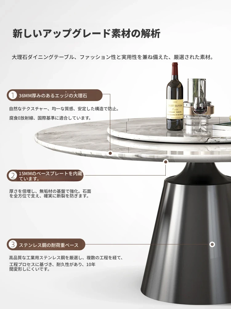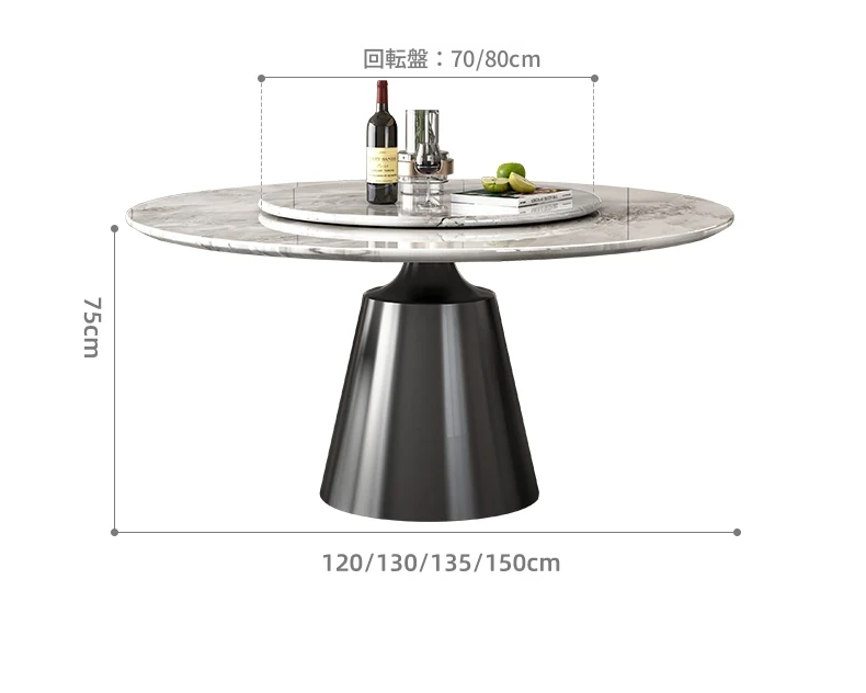 1.5M大理石ダイニングテーブル【回転盤あり】36MM厚み