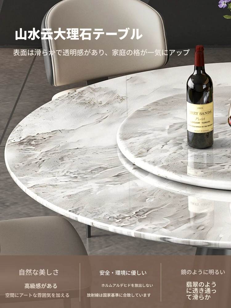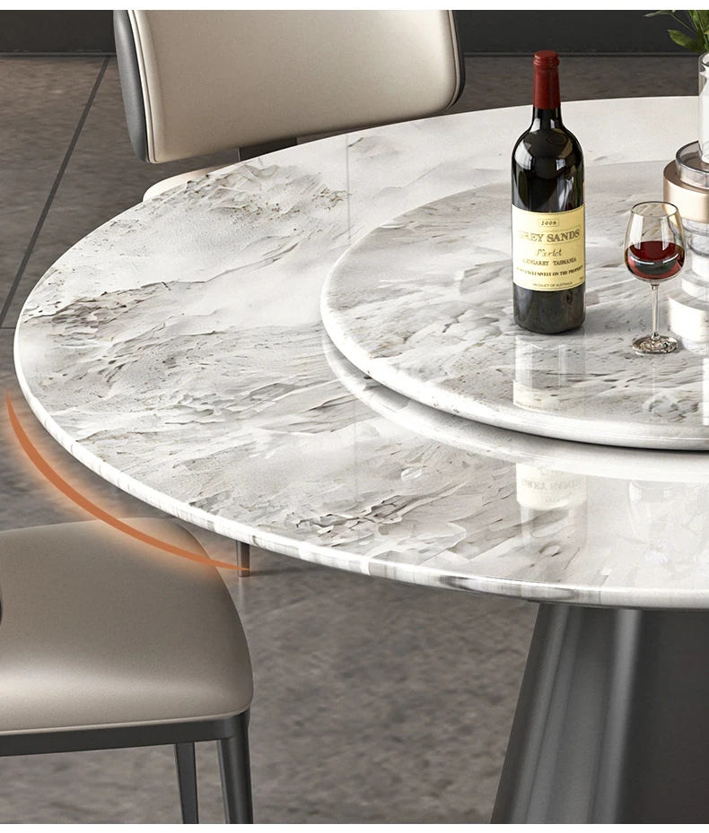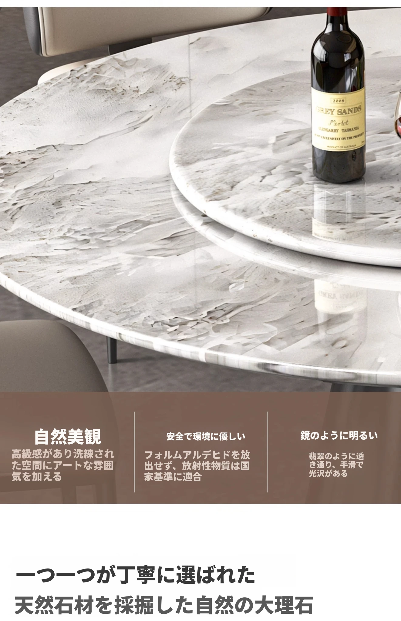 1.35M大理石ダイニングテーブル【回転盤あり】+猫の爪研ぎ用の皮製ダイニングチェア6脚