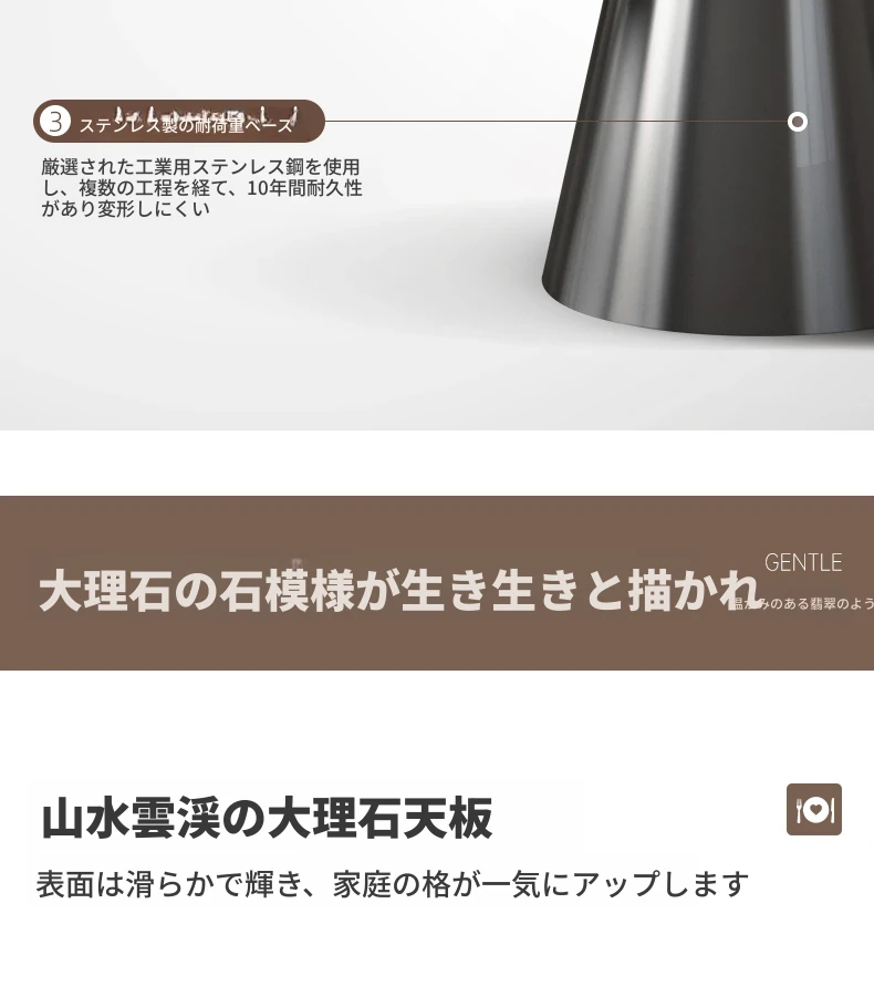 1.2M大理石ダイニングテーブル【回転盤なし】36MM厚み