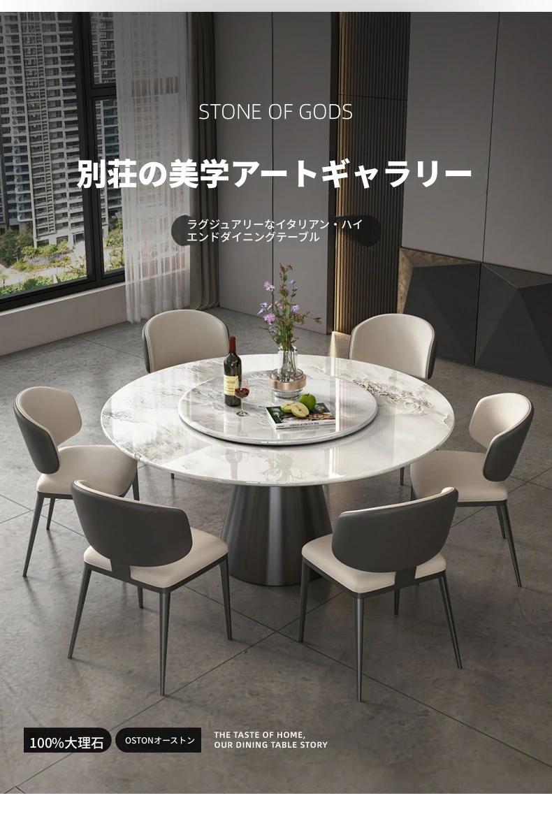 1.2M大理石ダイニングテーブル【回転盤あり】+猫の爪研ぎ用の皮製ダイニングチェア6脚
