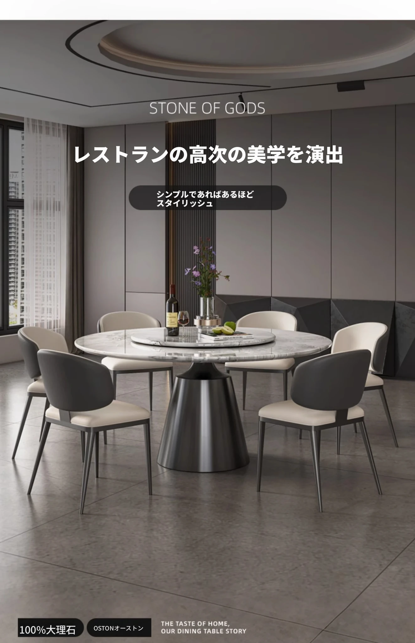 1.2M大理石ダイニングテーブル【回転盤あり】36MM厚み