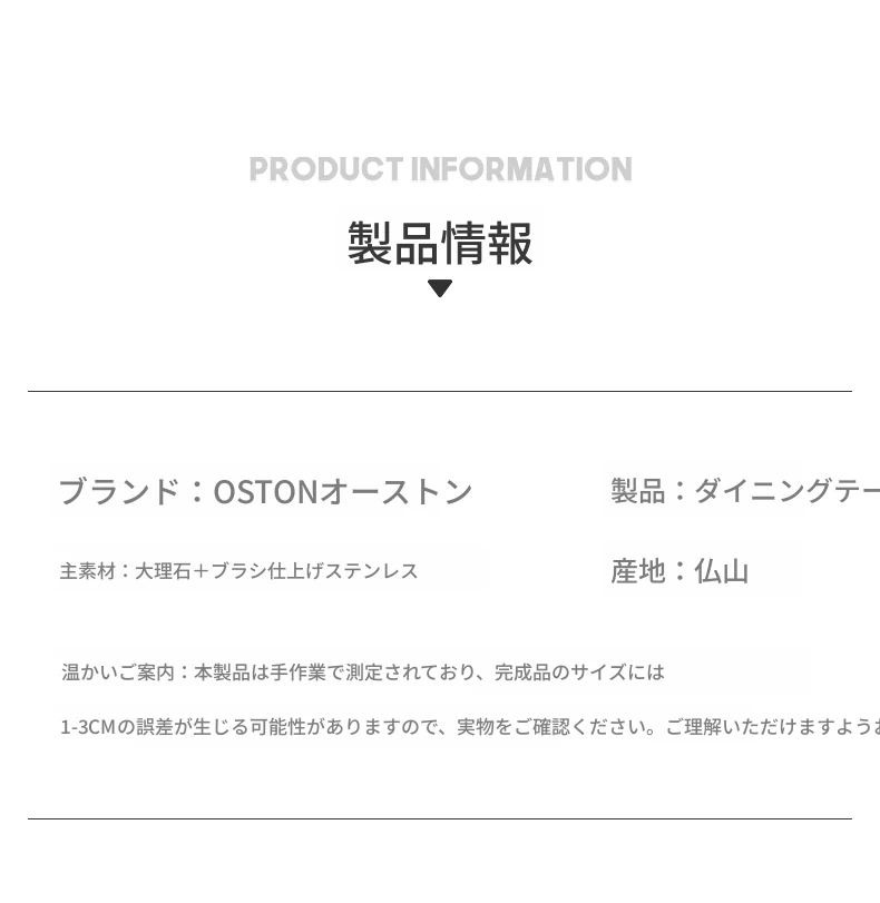 1.3M大理石ダイニングテーブル【回転盤なし】36MM厚み